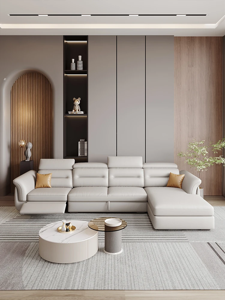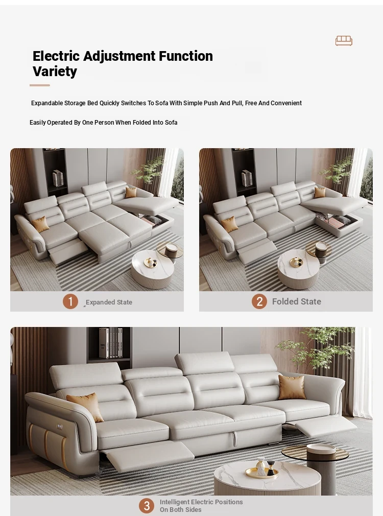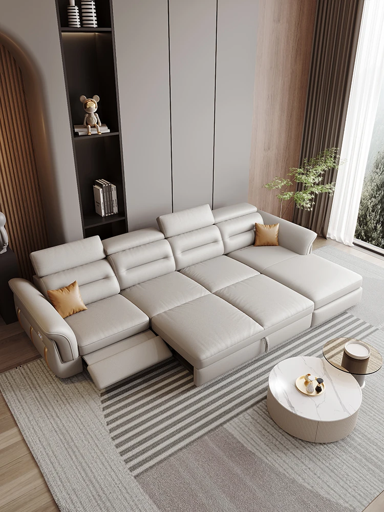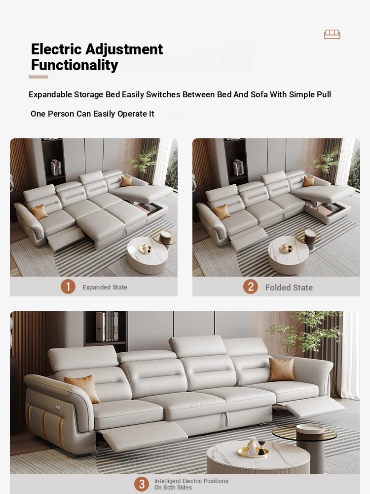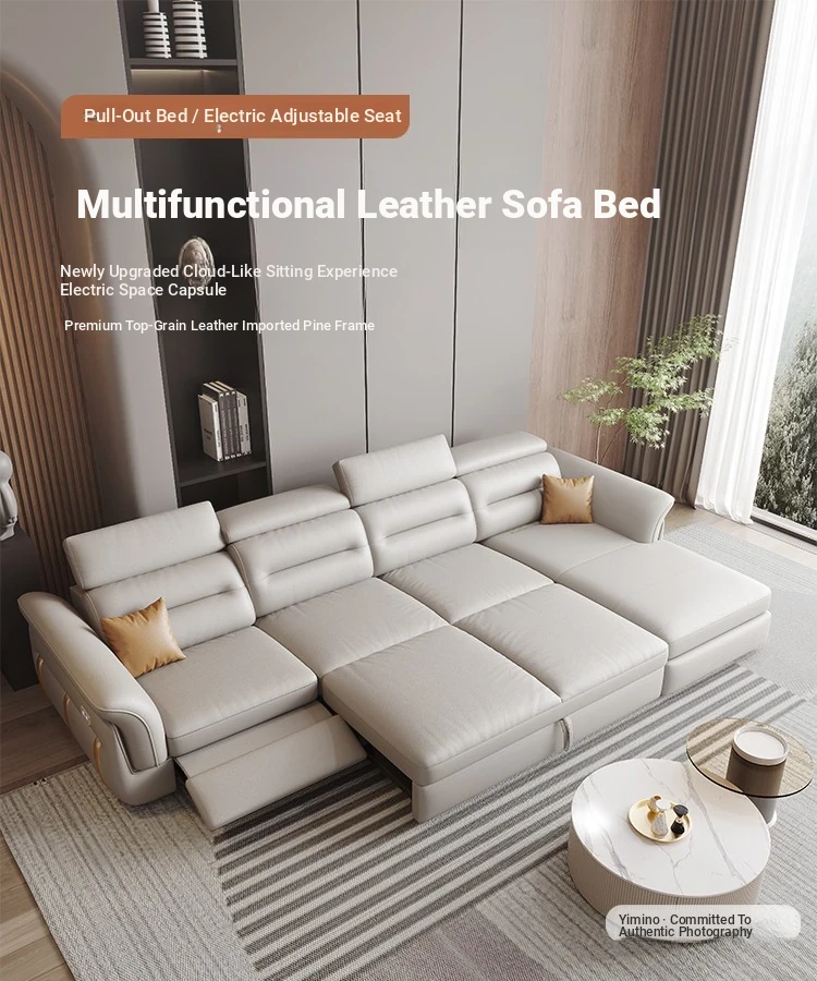 Luxury Multi-Functional Electric Sofa Bed – Modern Minimalist Design in Premium Leather, Space-Saving and Foldable, Perfect for Small Living Rooms