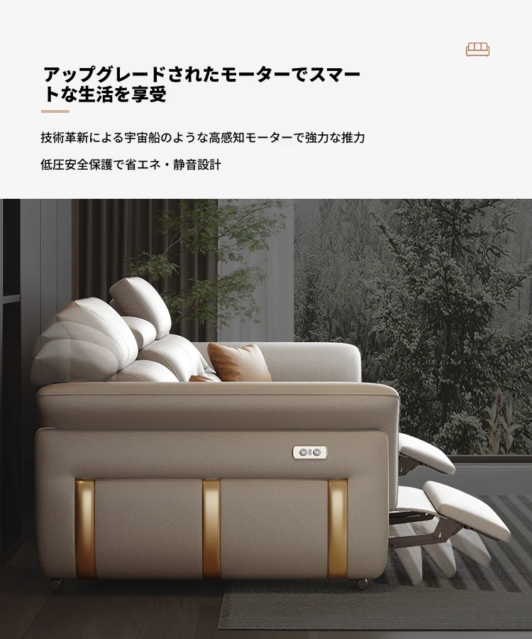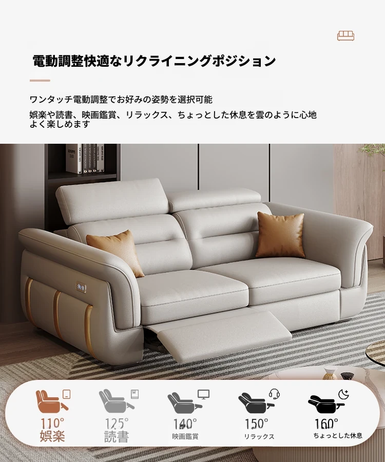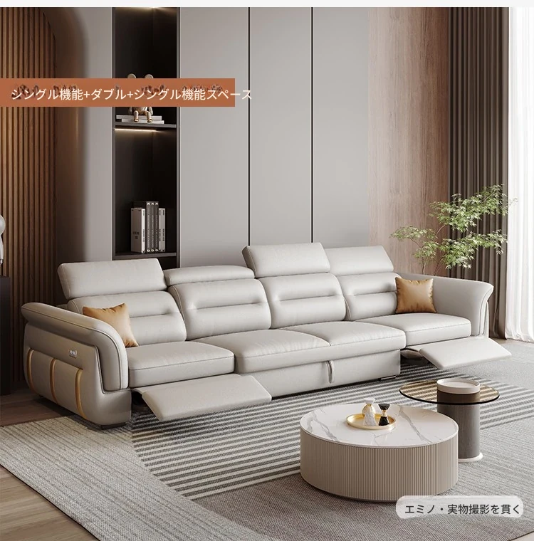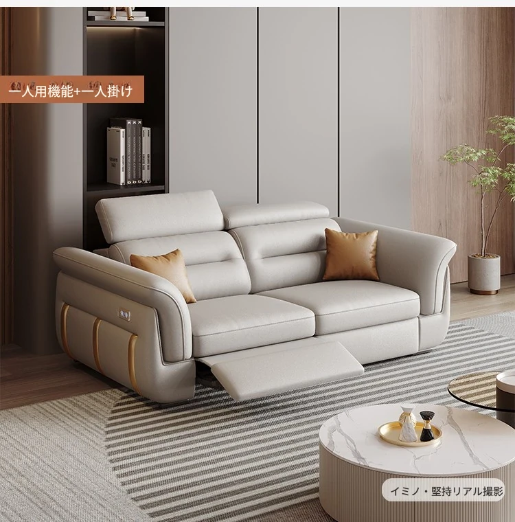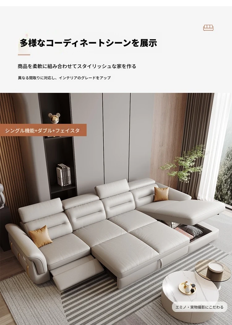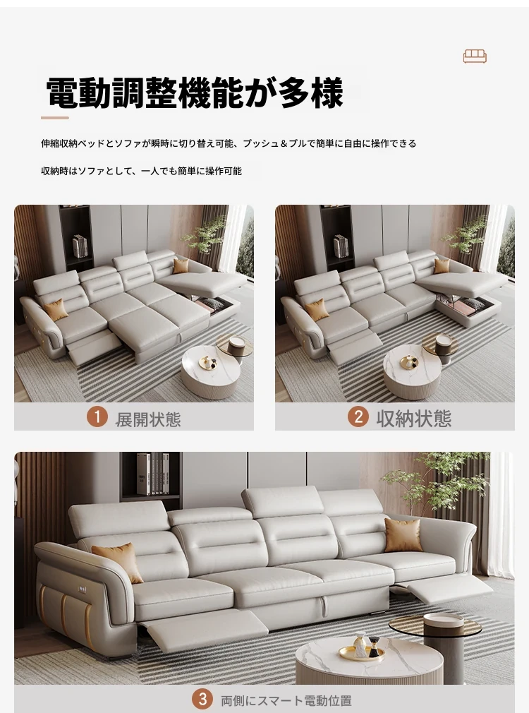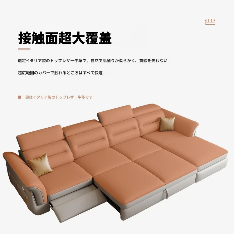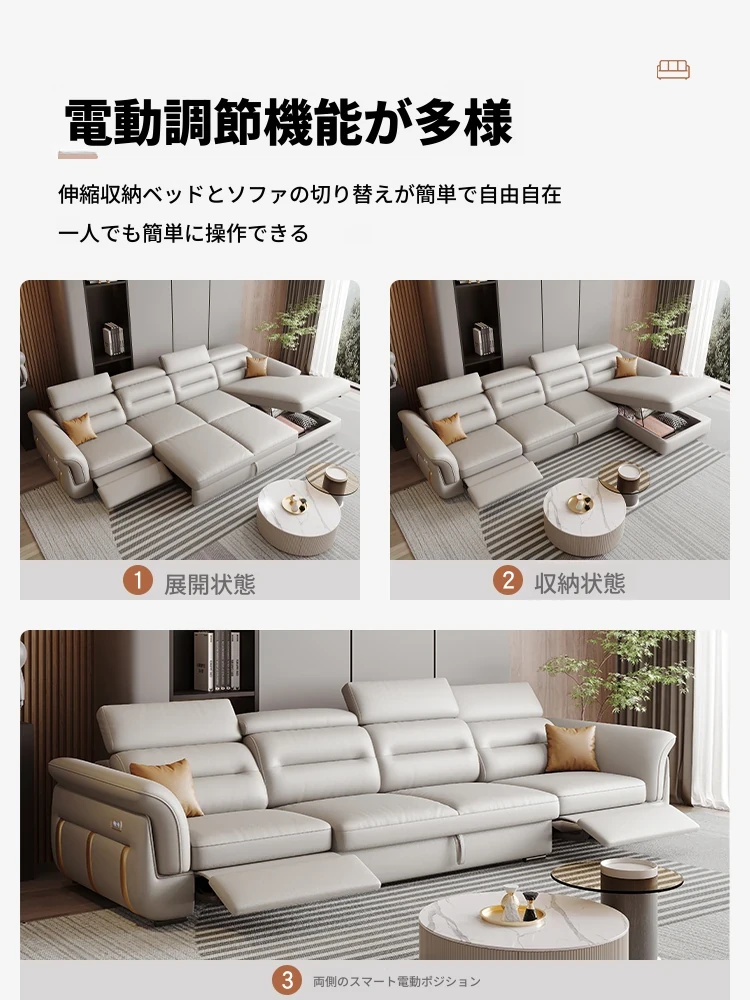 エレガントな電動多機能ソファベッド - モダンなリビングにぴったりな高級本革製、折りたたみ式でスペースを有効活用!小さな部屋にも最適なスタイリッシュなデザイン。