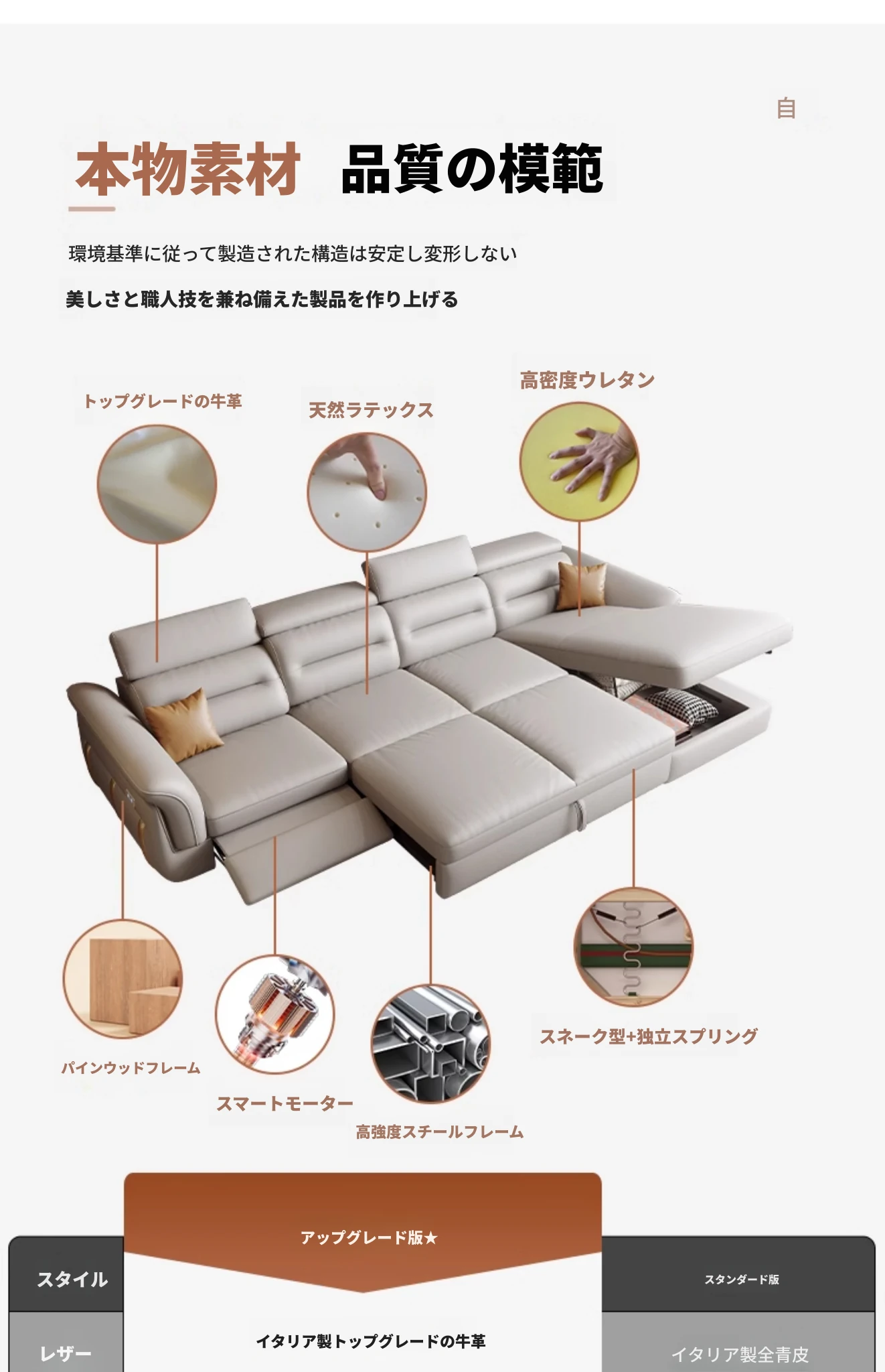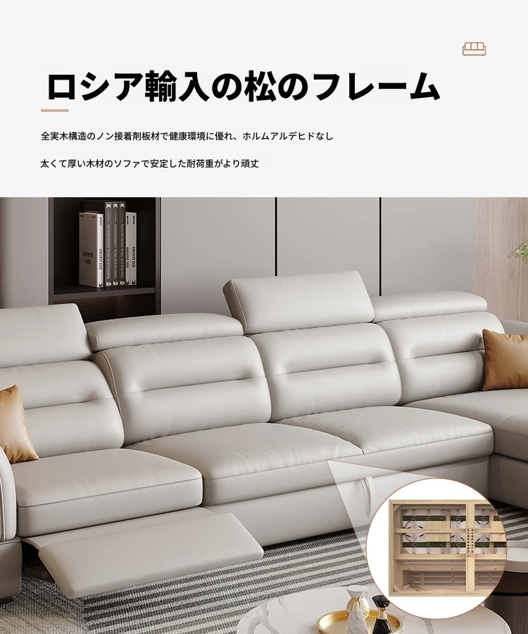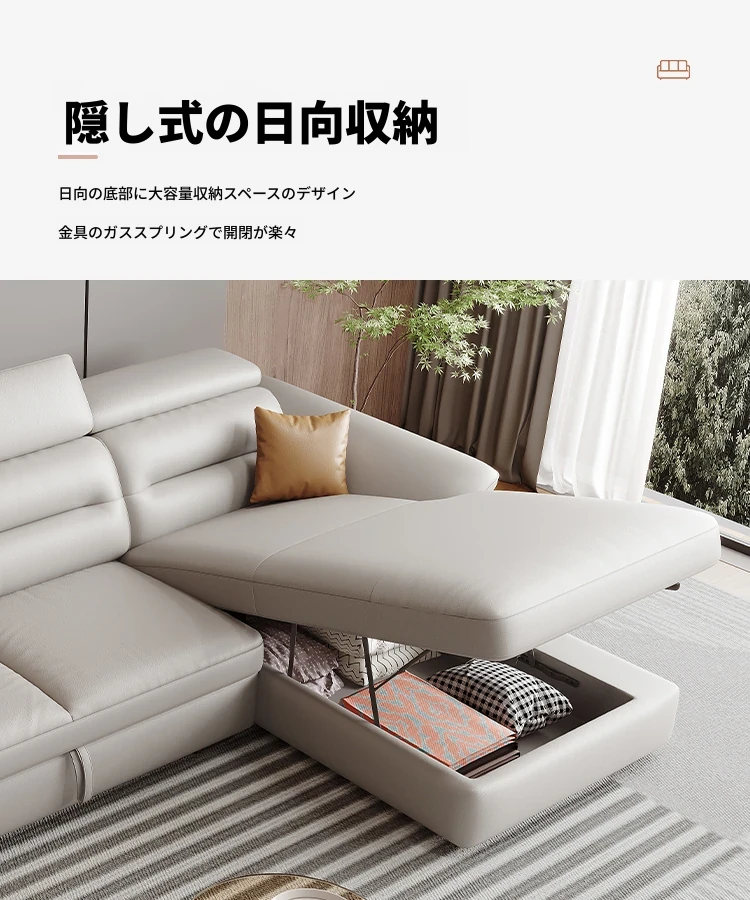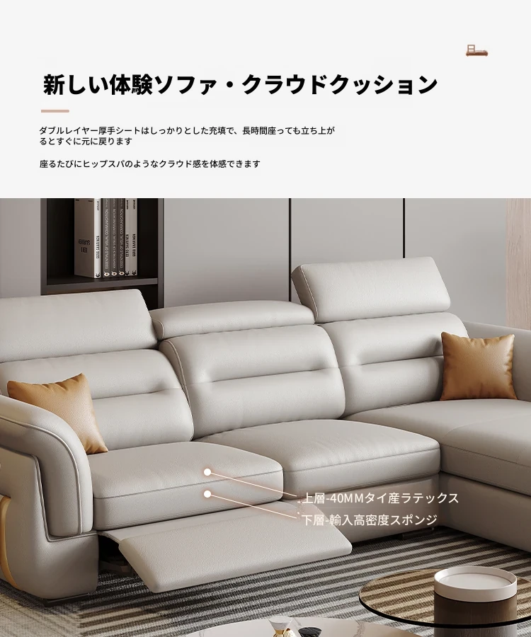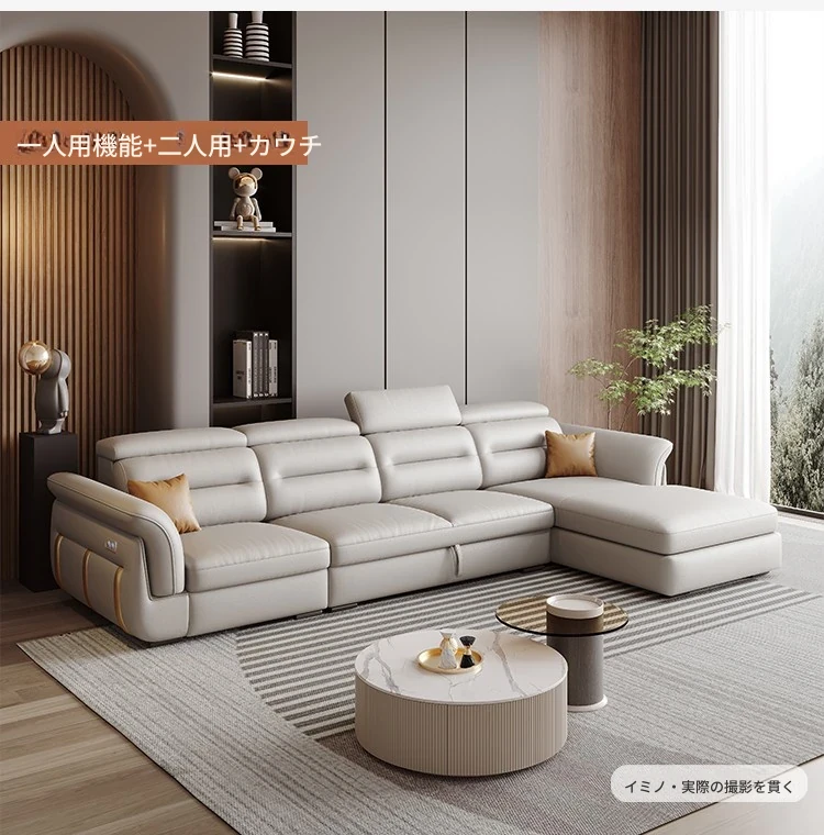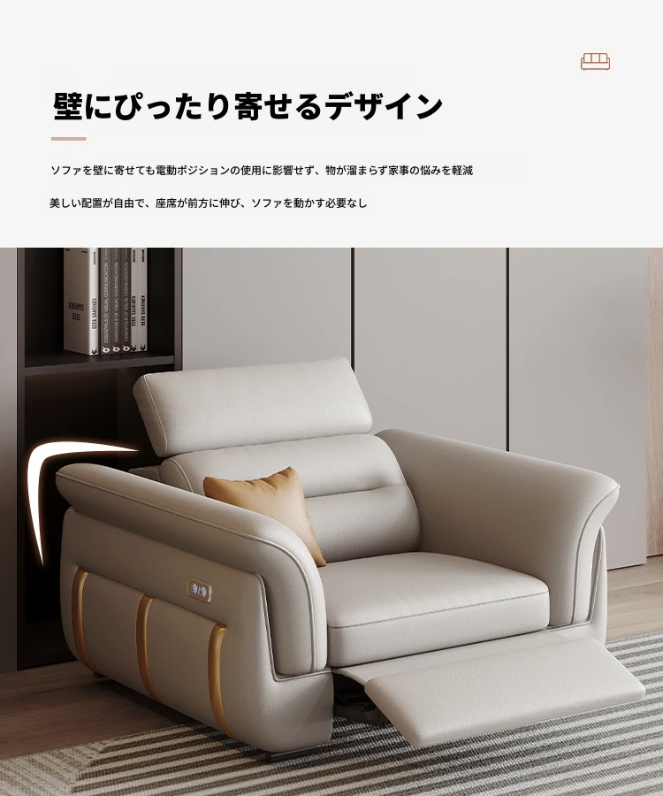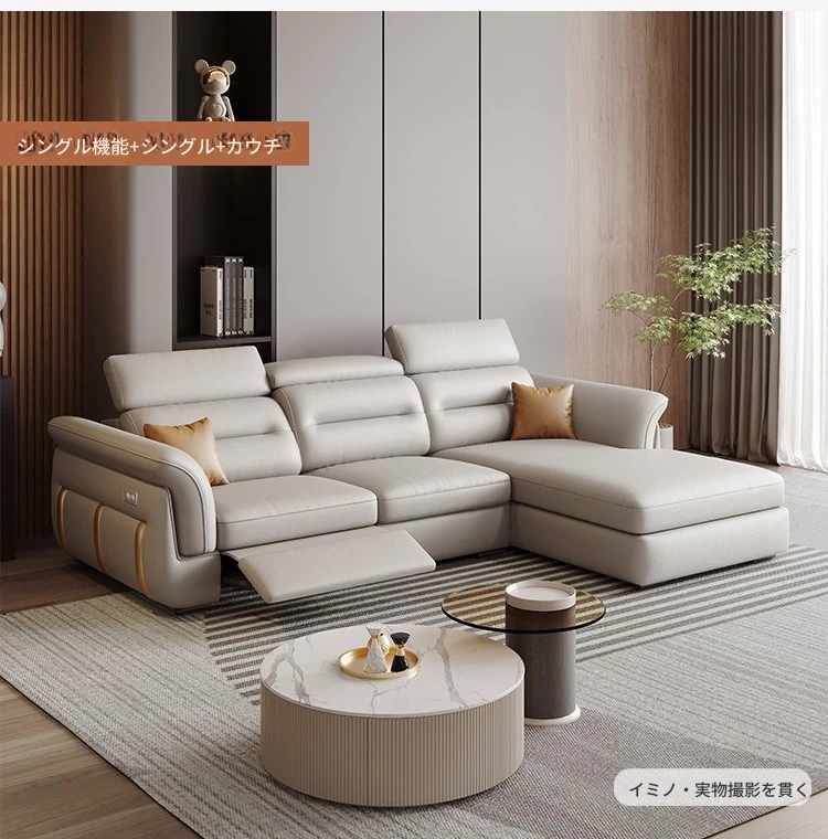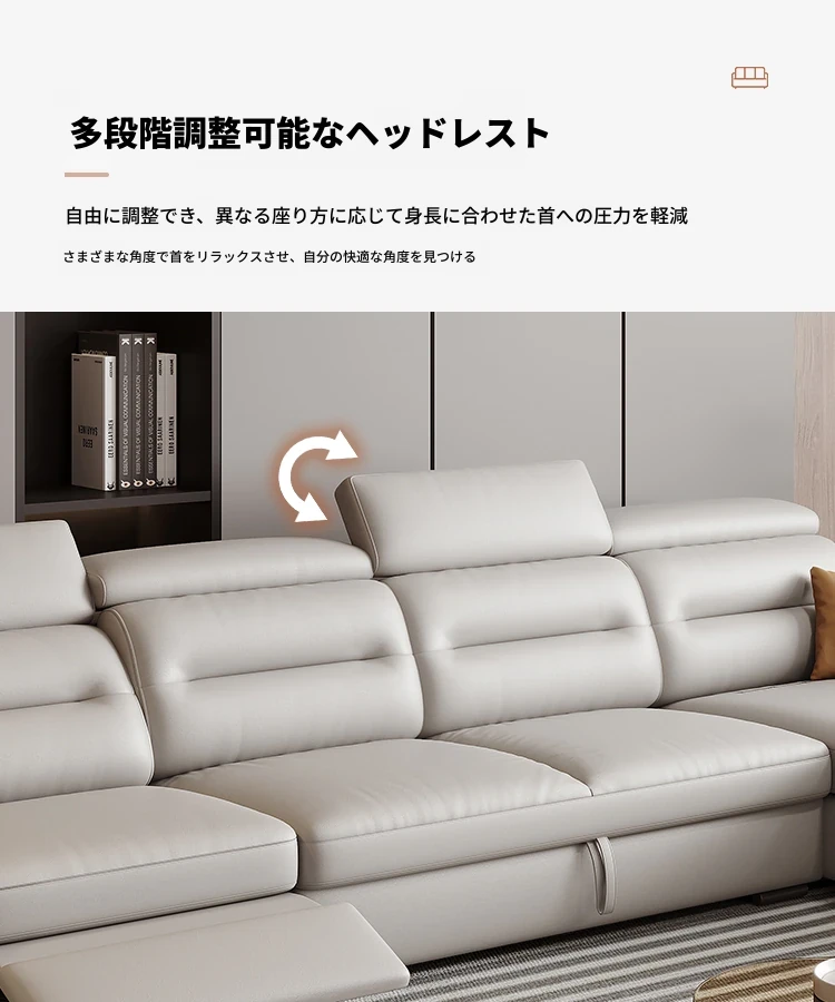 エレガントな電動多機能ソファベッド - モダンなリビングにぴったりな高級本革製、折りたたみ式でスペースを有効活用!小さな部屋にも最適なスタイリッシュなデザイン。