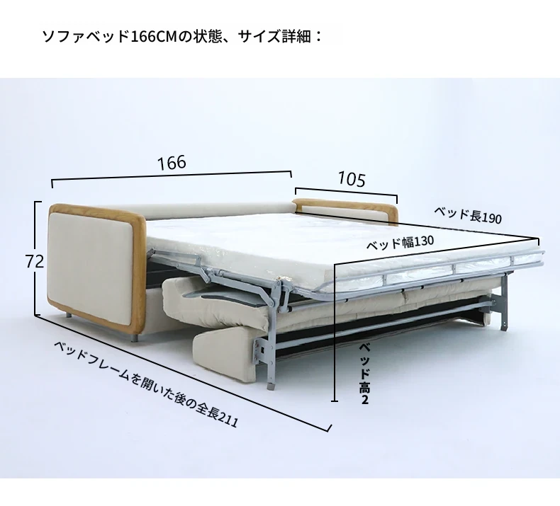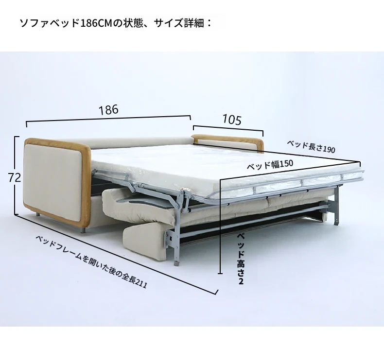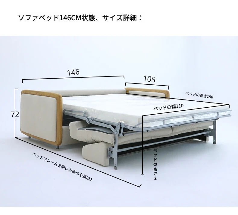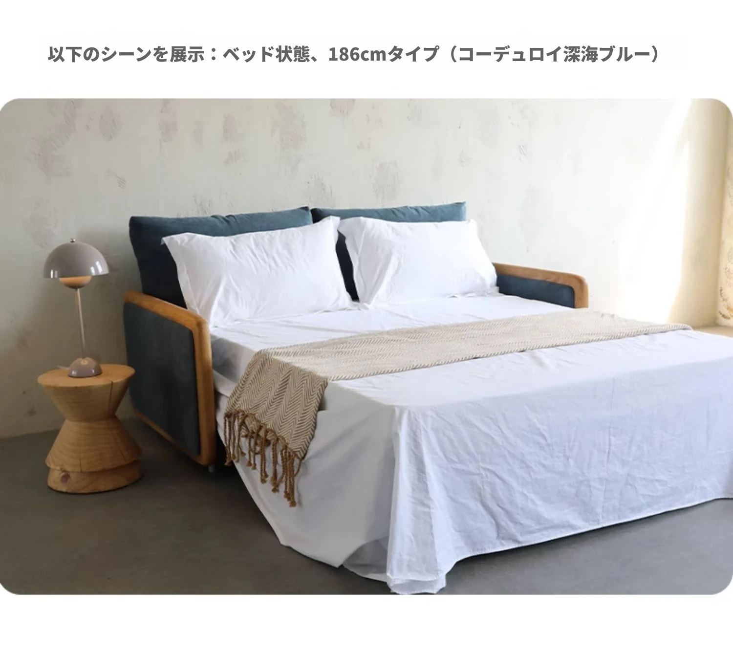 地中海風スタイルの木製ソファベッド!小型住宅に最適な折りたたみ式で、分解・洗浄可能。多機能で省スペース、シンプルなデザインでおしゃれなリビングを演出!