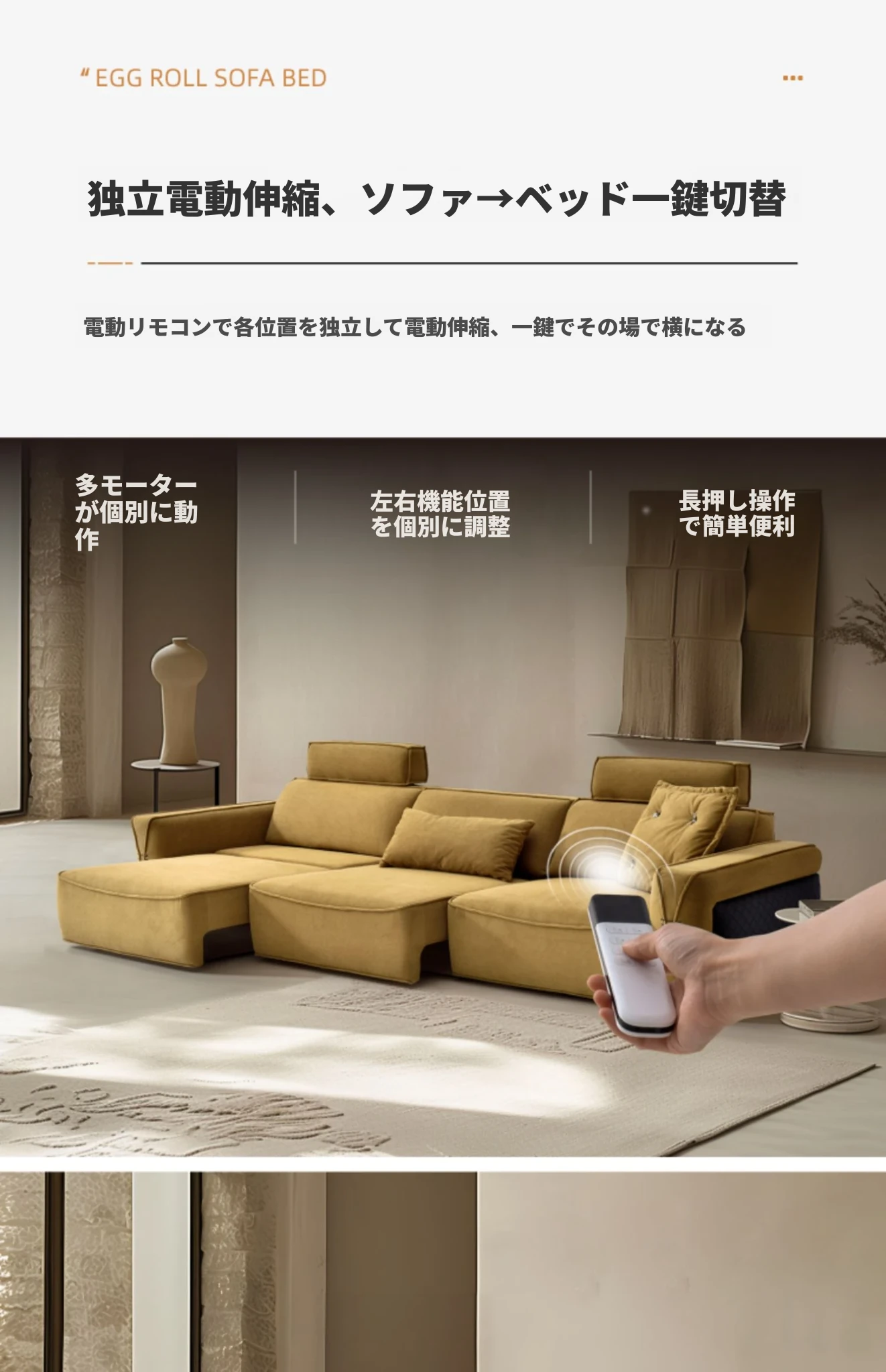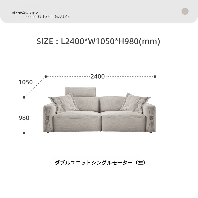 午後の理想的なモダン軽奢電動機能ソファ - スリムな小型住宅向け、伸縮可能な布製コンビネーションソファベッド、リモコン操作で快適さを実現!