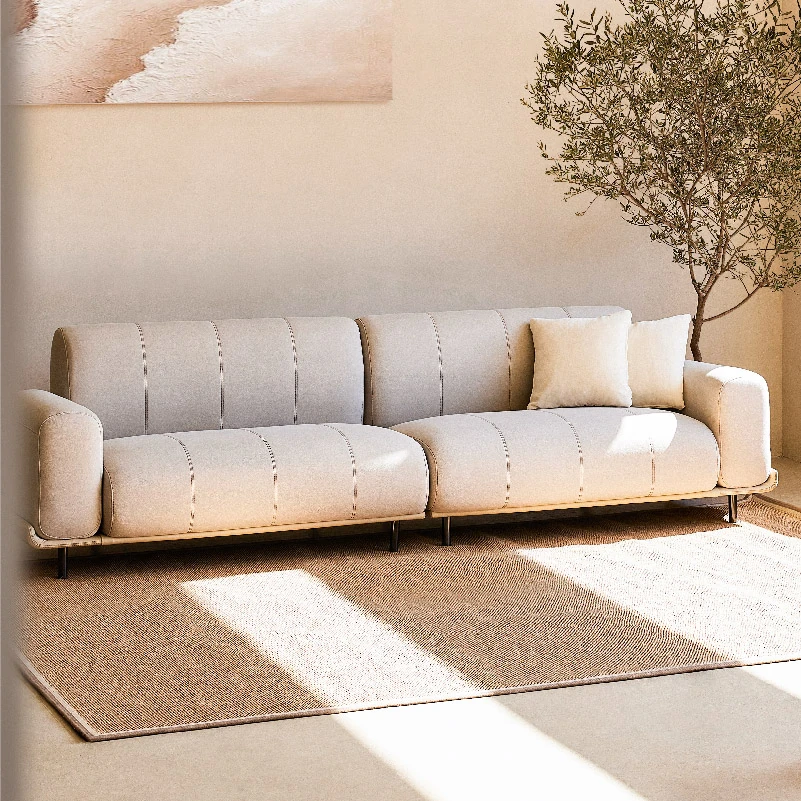 午後の理想的なシンプルモダン小型リビング用ソファー。お手入れ不要のテクノロジー布を使用した3人掛け天然木製の人気ソファーで、スタイリッシュな空間を演出します。