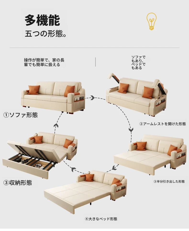 現代的シンプルで折りたたみ可能な2in1ソファ|小型住宅向けのトレンディなデザイン|座ると寝るが1つに!多機能ソファベッド|2025年新作登場!