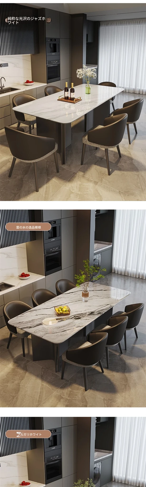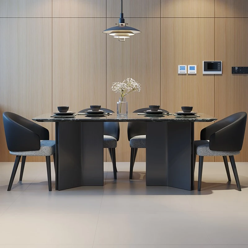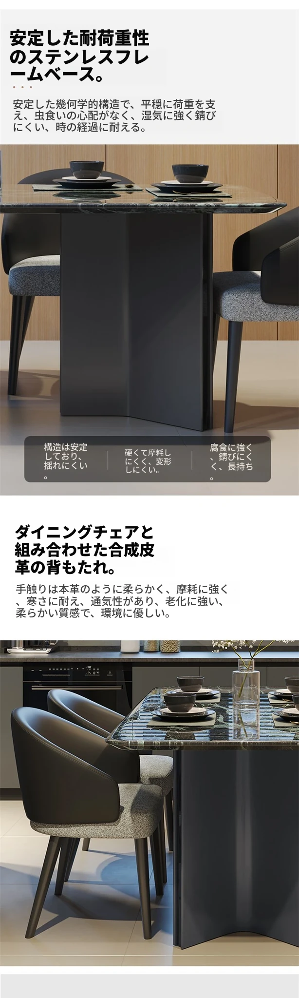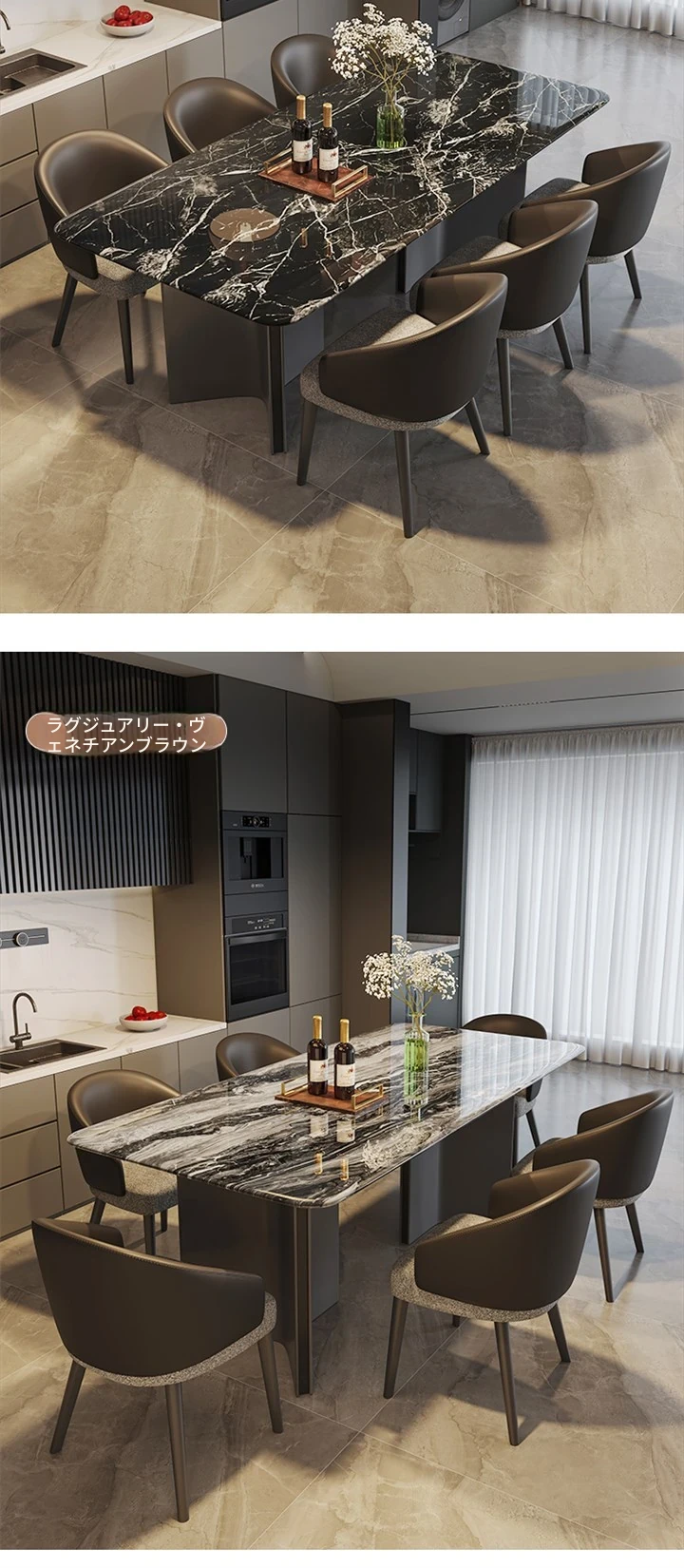 現代ライトラグジュアリー 極簡大理石ダイニングテーブル プラDABグリーンストーンデザイン 家庭用長方形テーブル&チェアセット 高級感あふれる美しい食卓を演出!