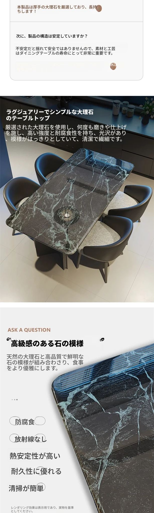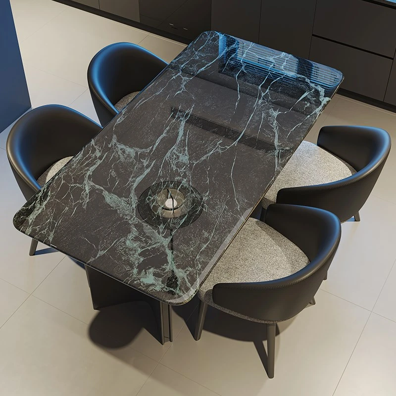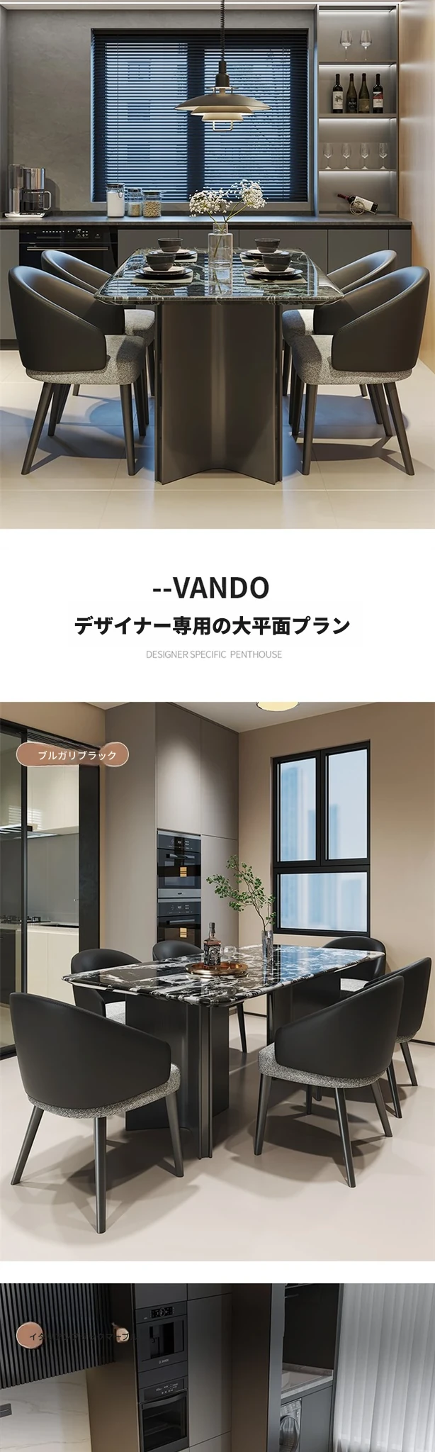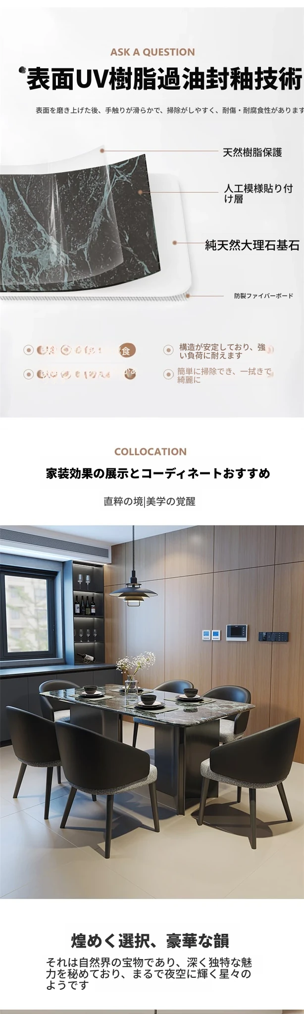 現代ライトラグジュアリー 極簡大理石ダイニングテーブル プラDABグリーンストーンデザイン 家庭用長方形テーブル&チェアセット 高級感あふれる美しい食卓を演出!