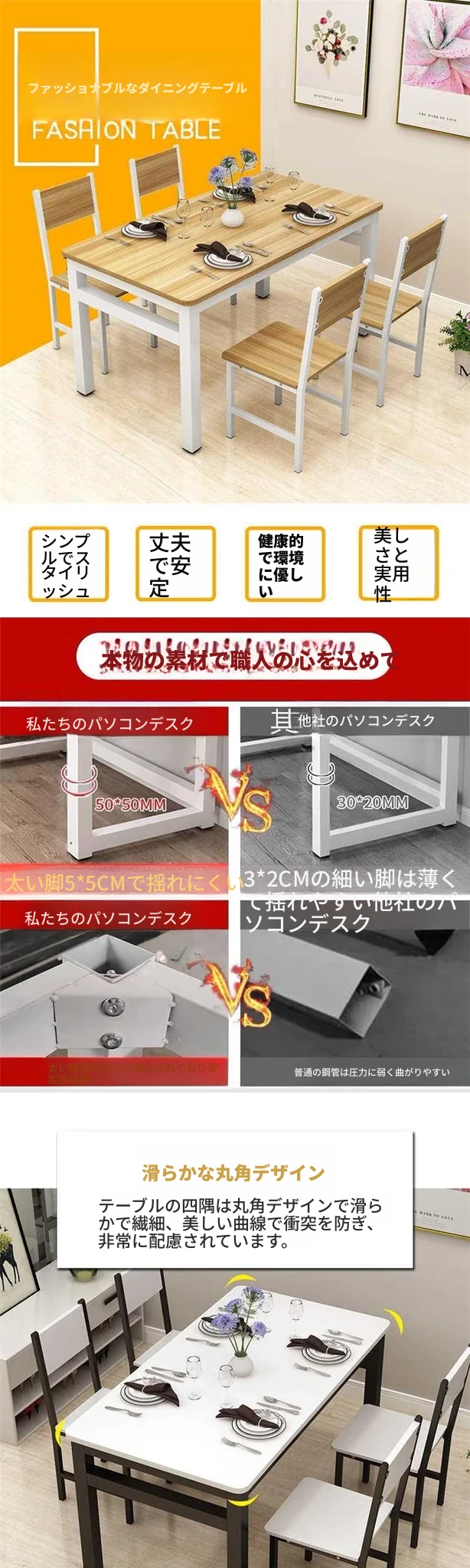 モダンな小型46人用シンプルな家庭用簡易ダイニングテーブルセット!長方形でスペースを最大限に活用し、快適な食事体験を提供します。おしゃれなデザインで、カフェやレストランにもぴったり!