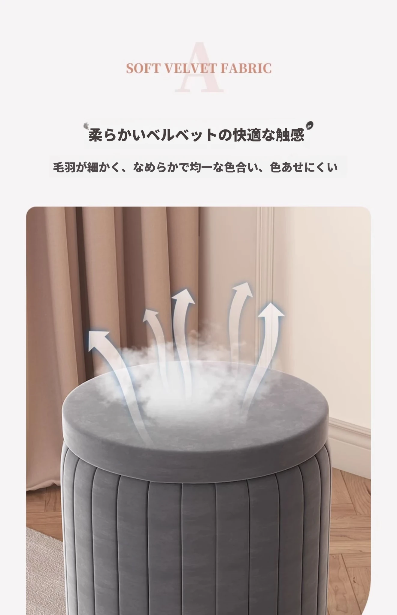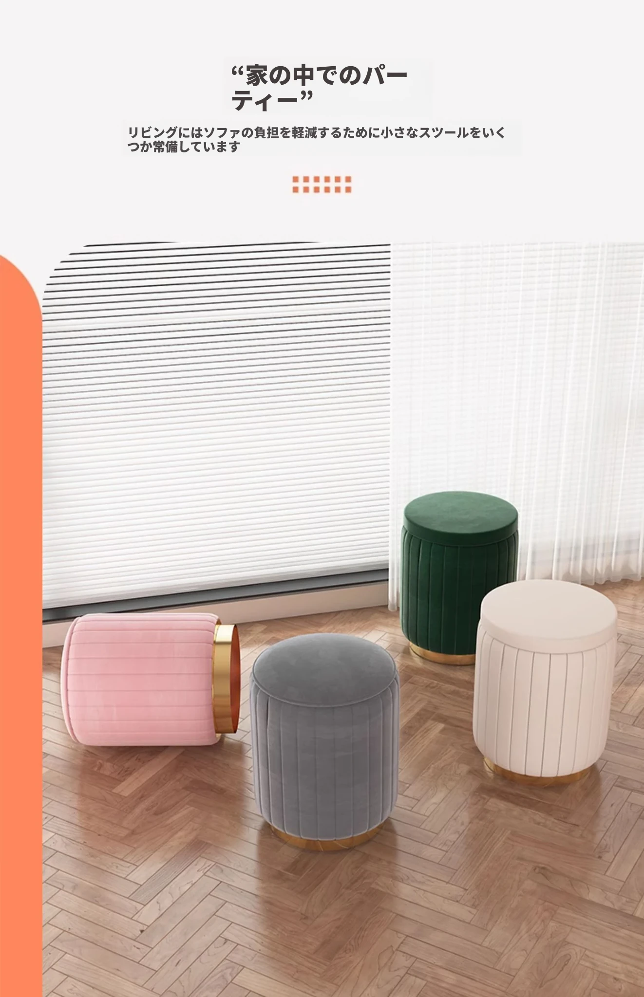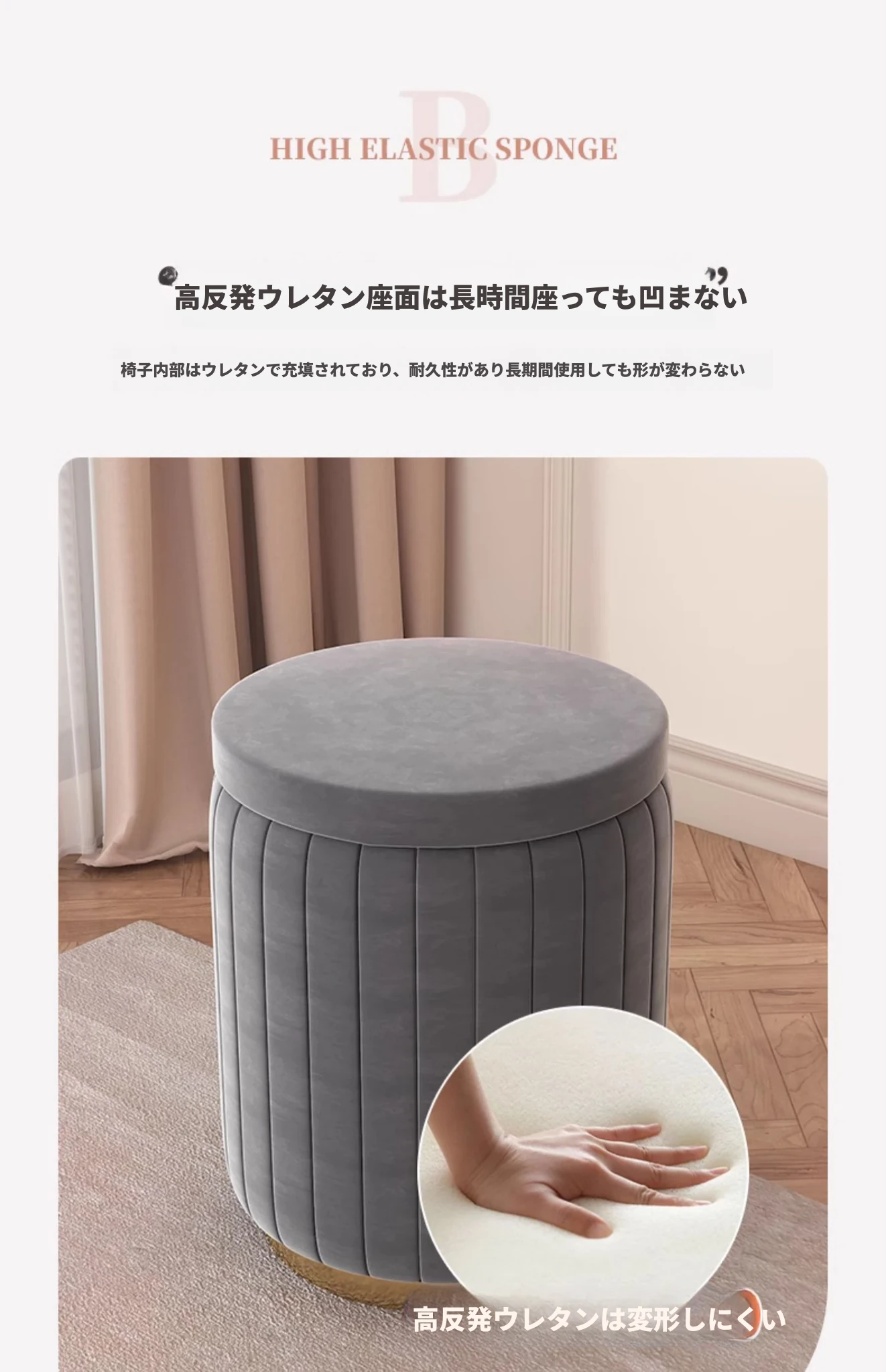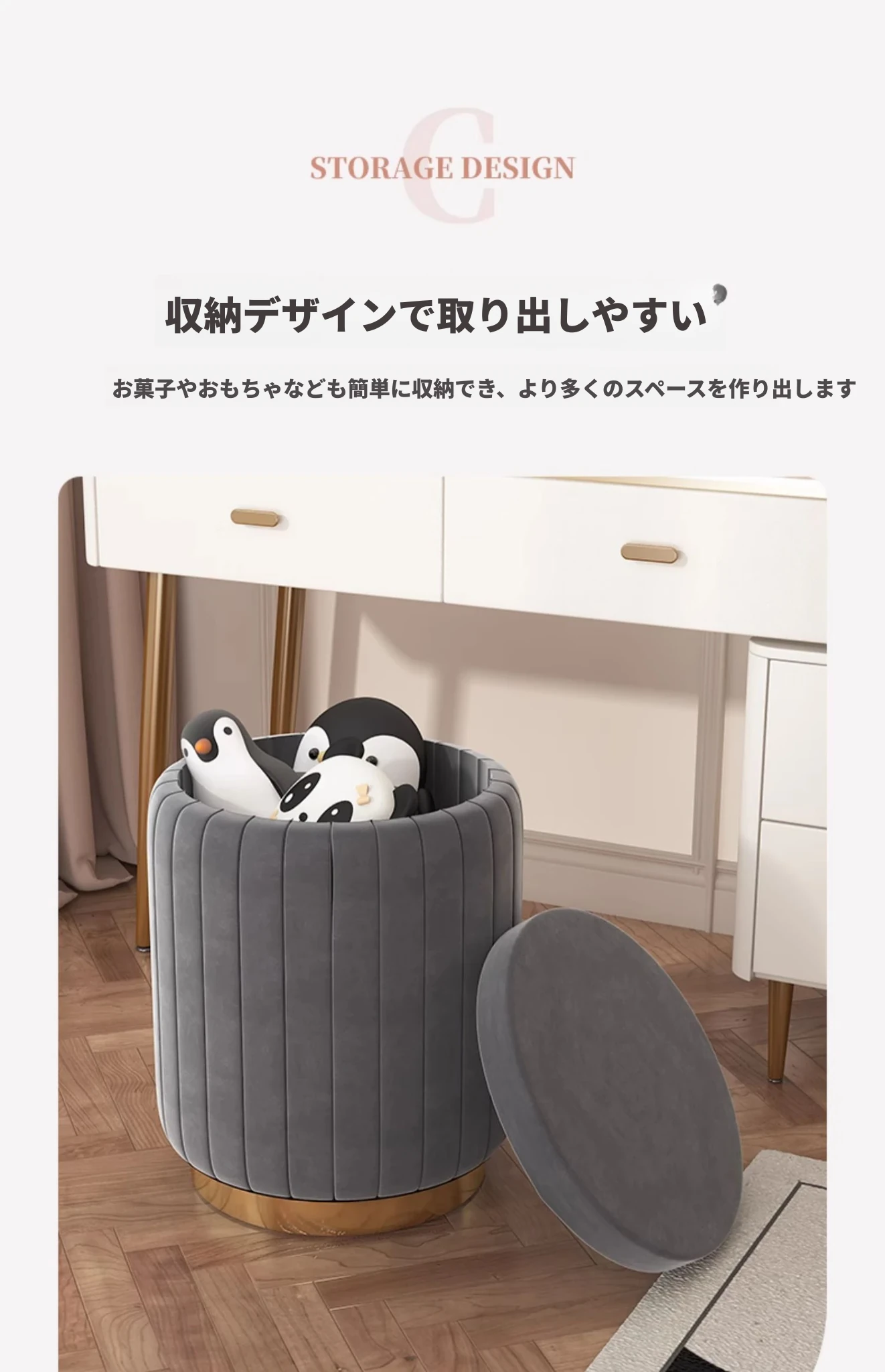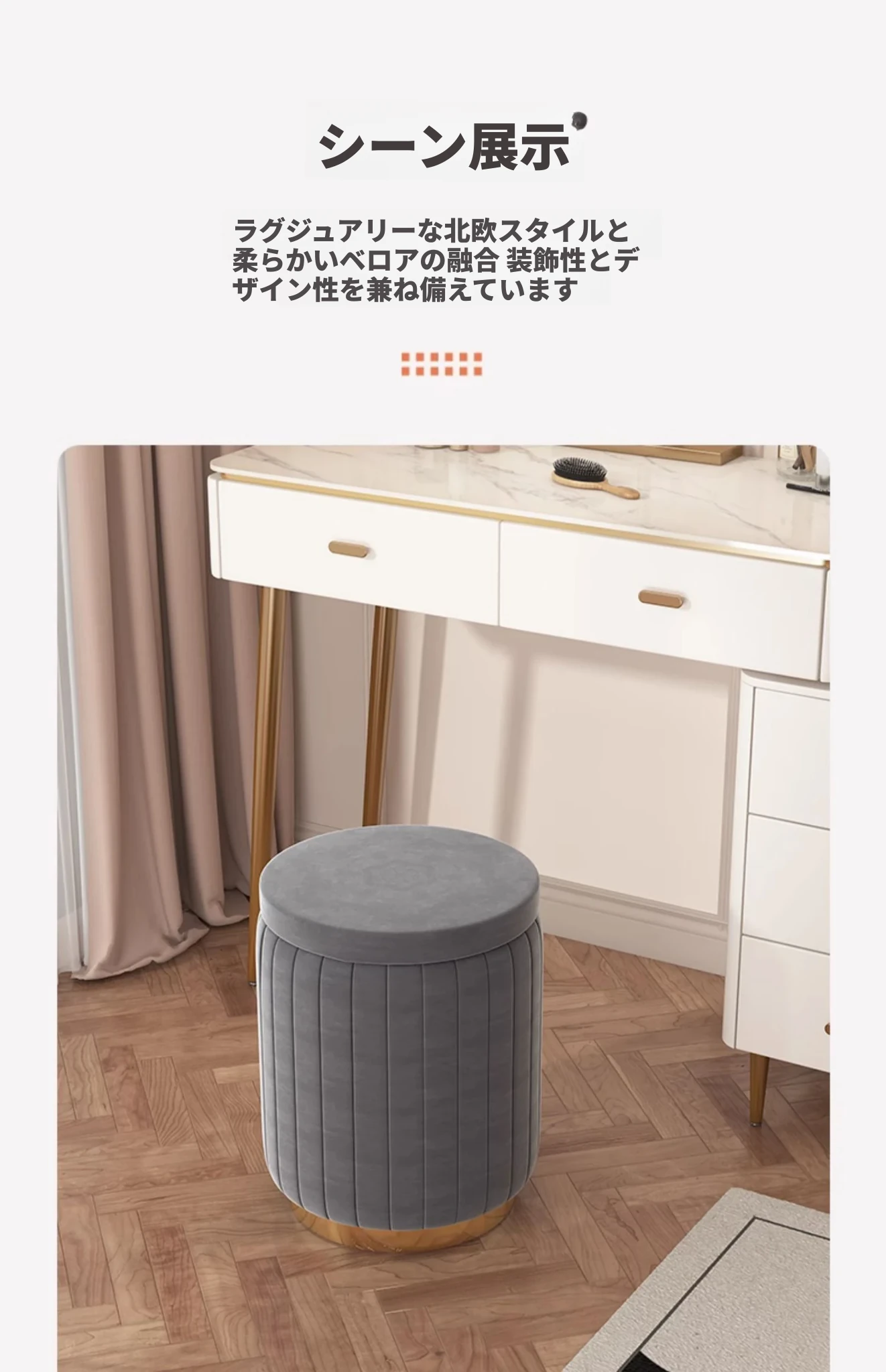 インスタ映え!モダンでシンプルな化粧椅子 - おしゃれなラウンドスツール、収納機能付きでお部屋をスッキリ。メイク台にぴったりなロースツールで、毎日のビューティータイムをもっと楽しく!