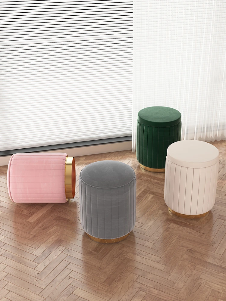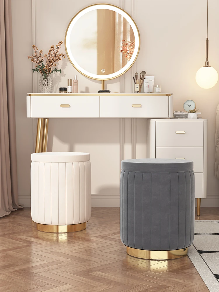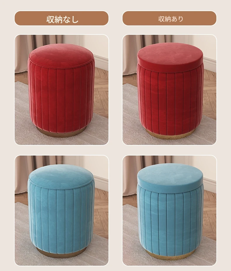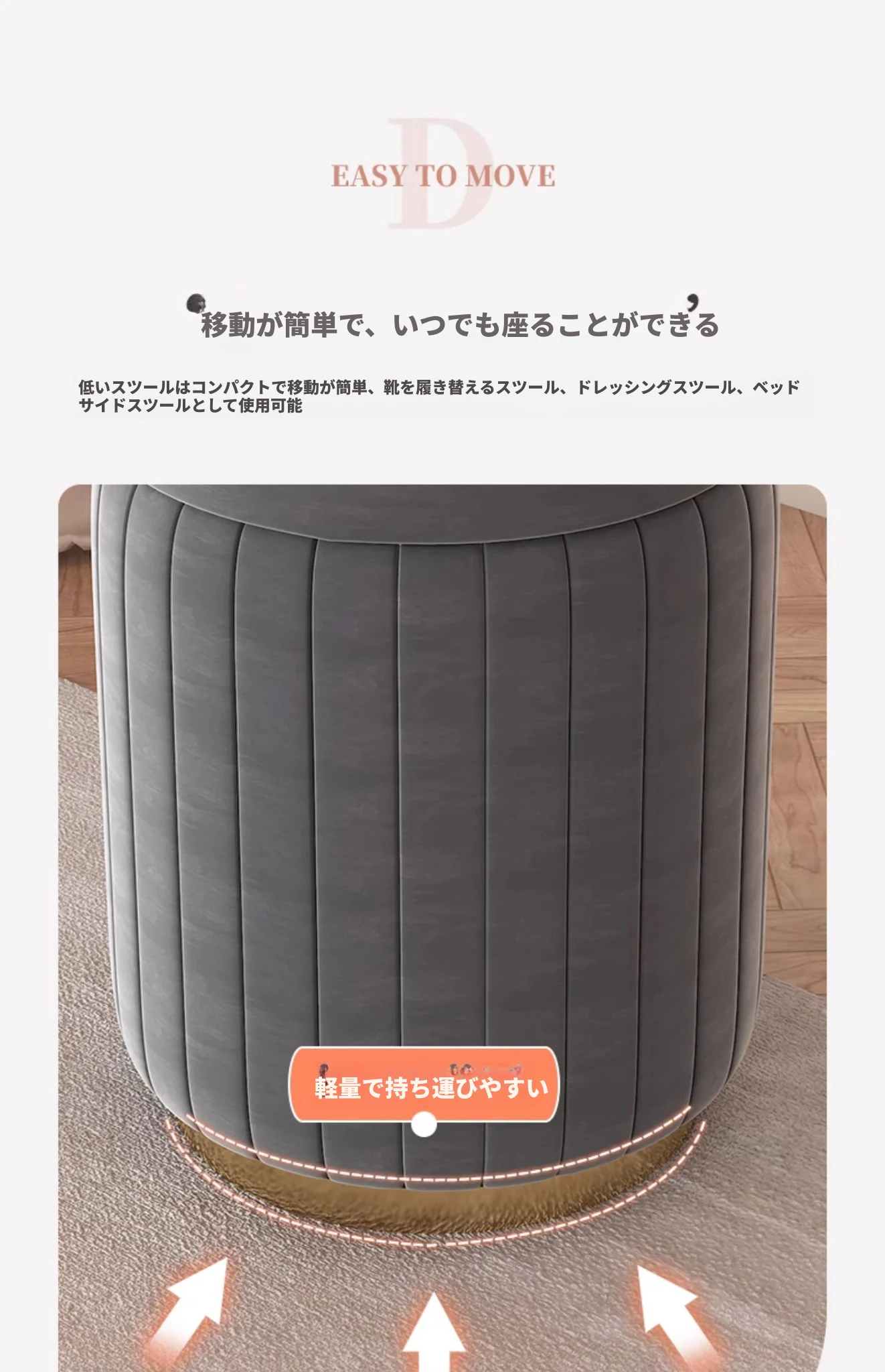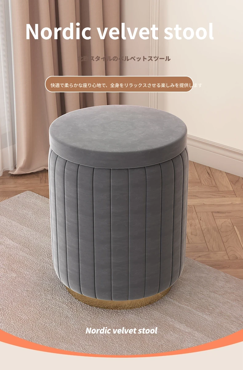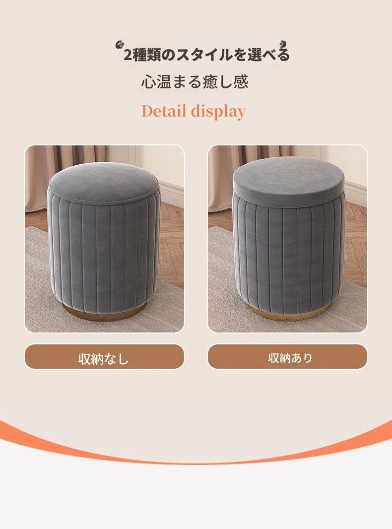 インスタ映え!モダンでシンプルな化粧椅子 - おしゃれなラウンドスツール、収納機能付きでお部屋をスッキリ。メイク台にぴったりなロースツールで、毎日のビューティータイムをもっと楽しく!