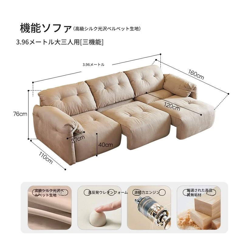 3.15メートル三人用[三機能]高級シルク光沢ベルベット生地