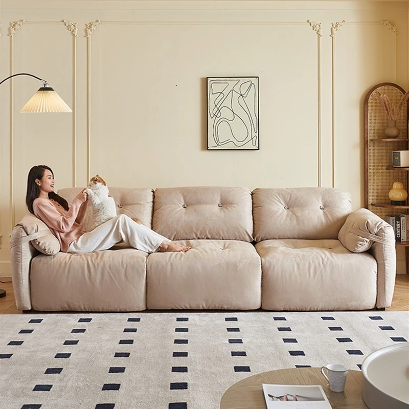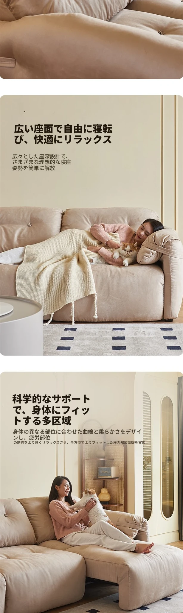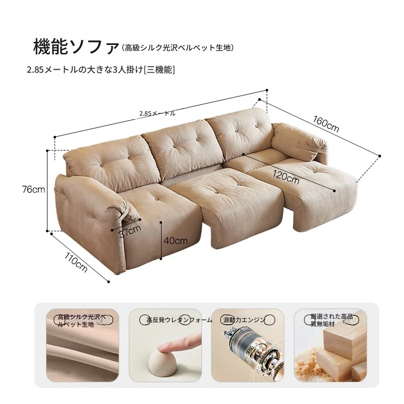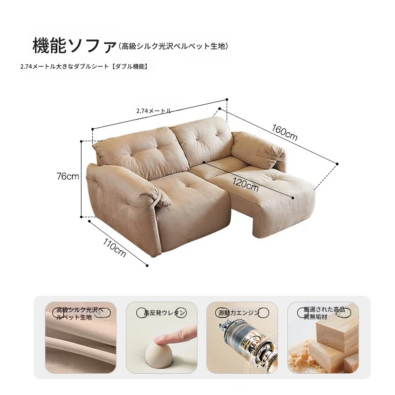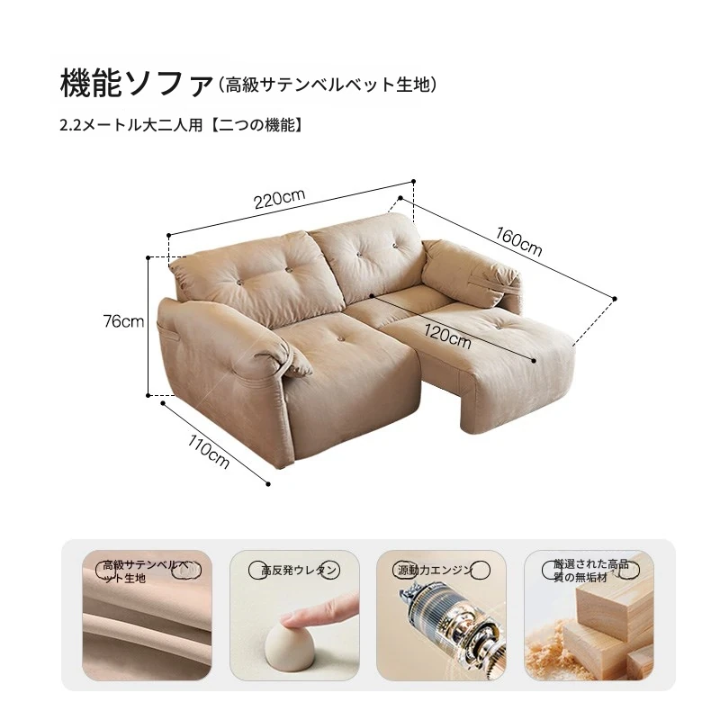 モダンでシンプルなデザインの雲のような機能性電動ソファベッド、コンパクトなサイズでリビングにぴったり!伸縮可能なヘッドレスト、まるで宇宙船のような快適さを実現した布製ソファ。