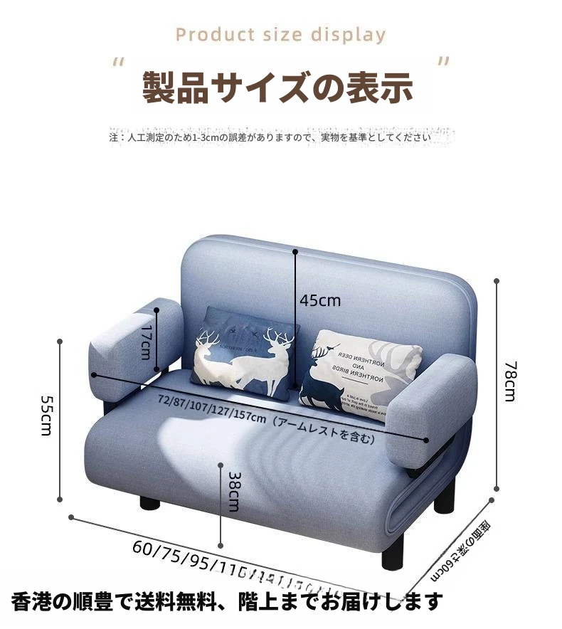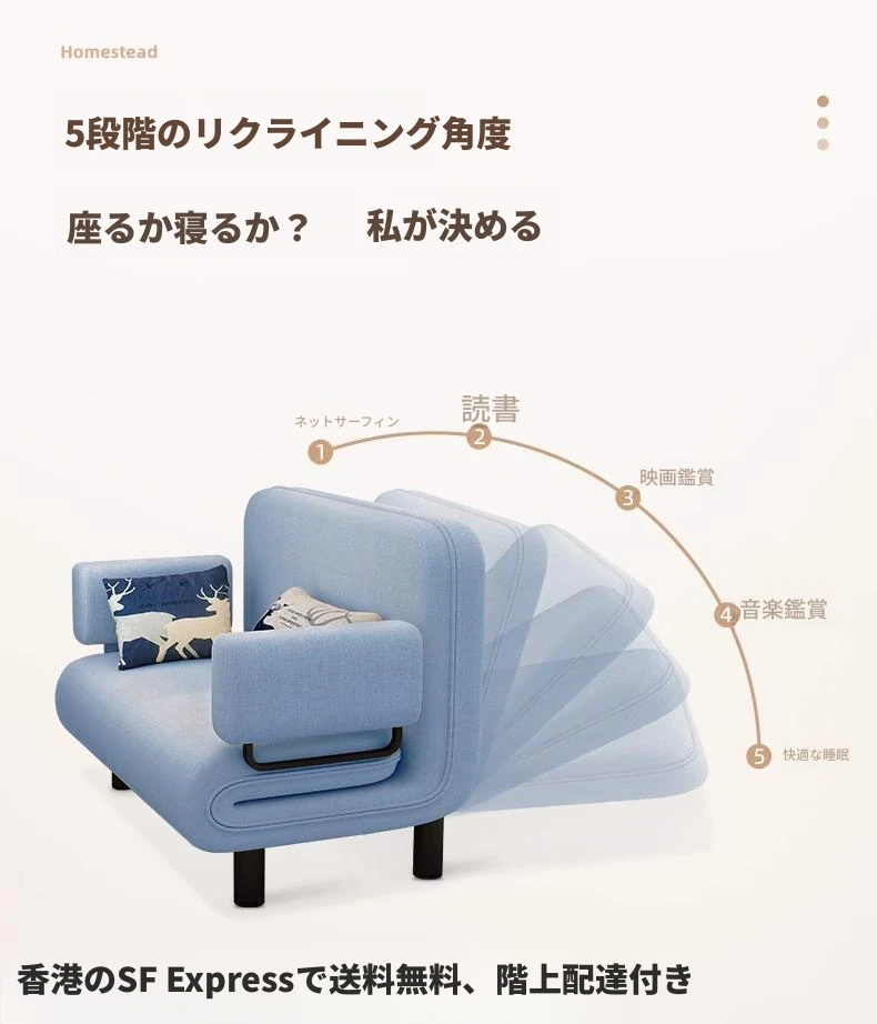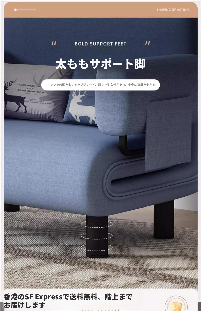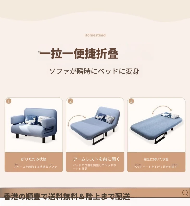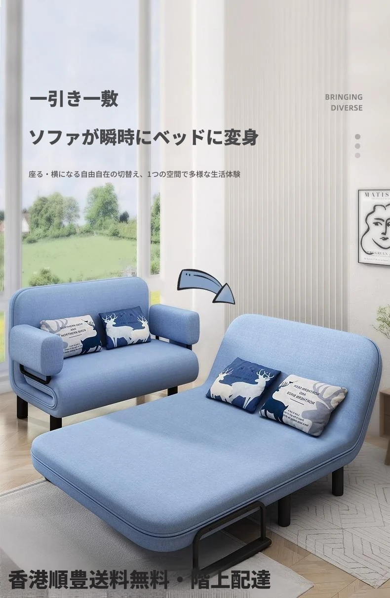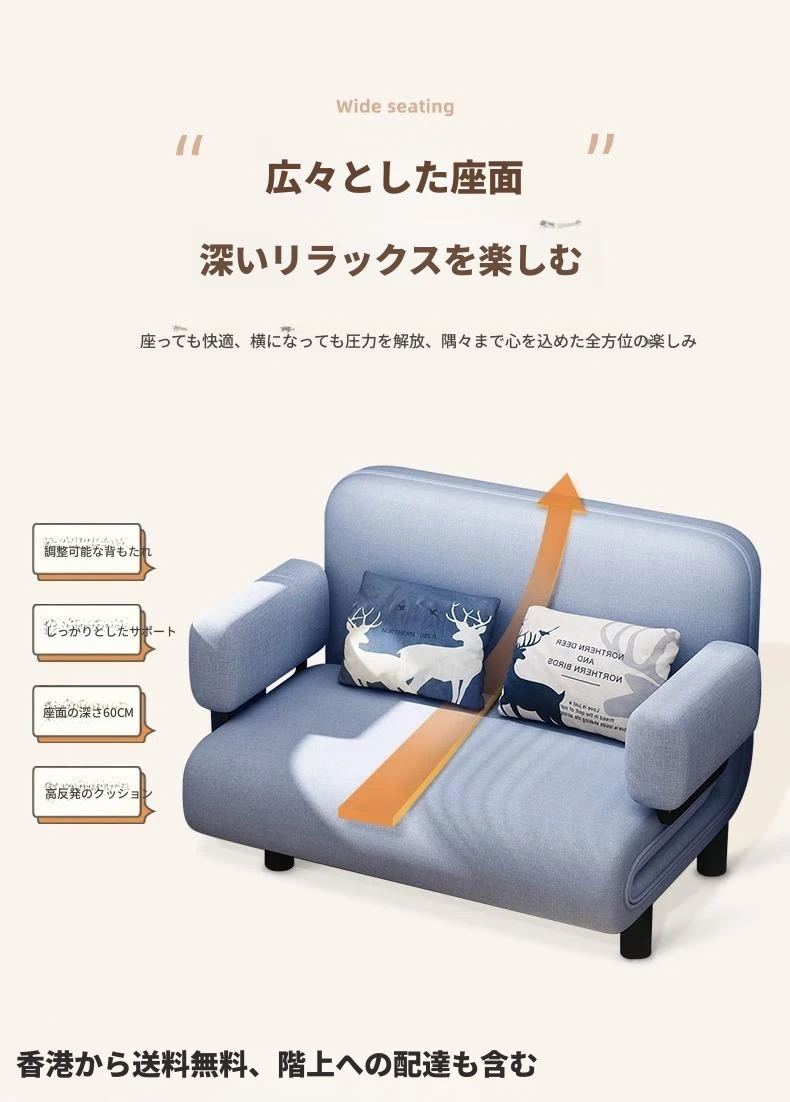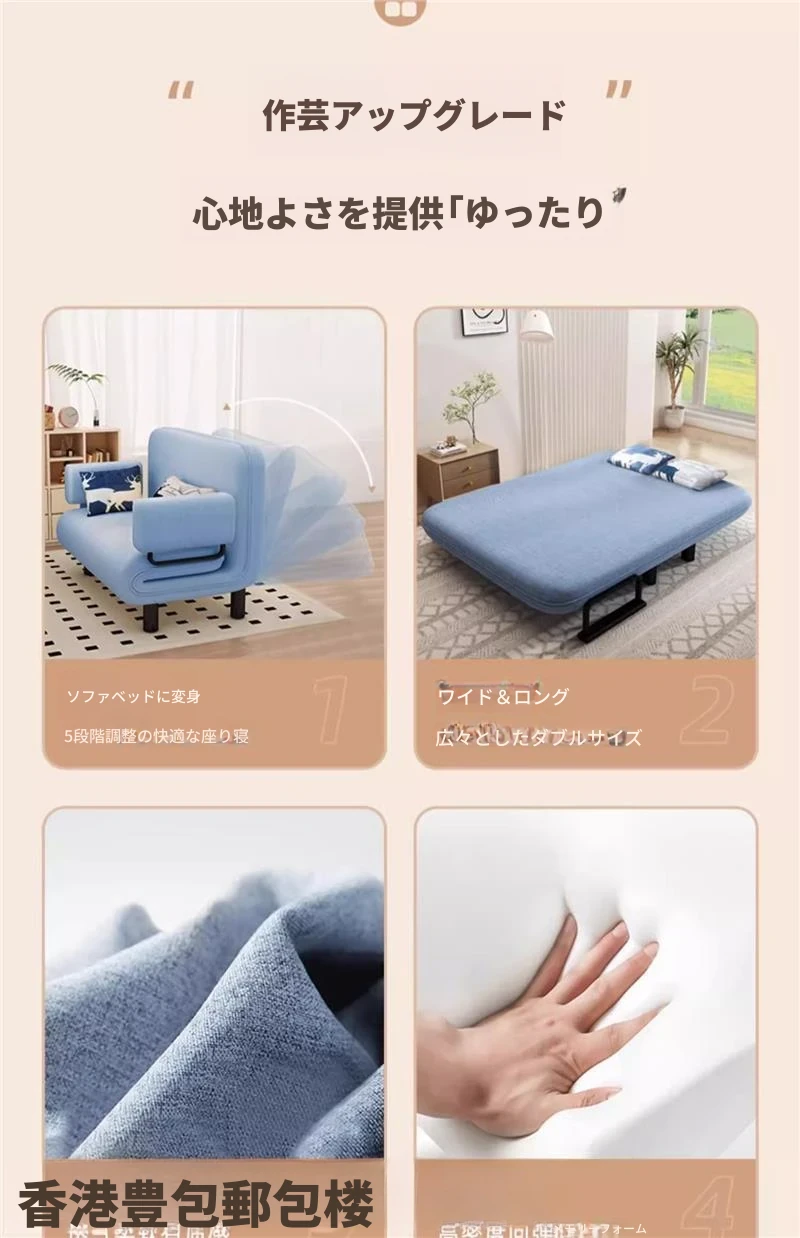 【香港製】折りたたみソファベッド!小さなリビングに最適な1人用・2人用、バルコニーでも使える多機能デザイン!快適さと便利さを兼ね備えた新しいライフスタイルを提案します!