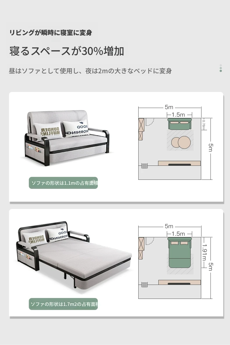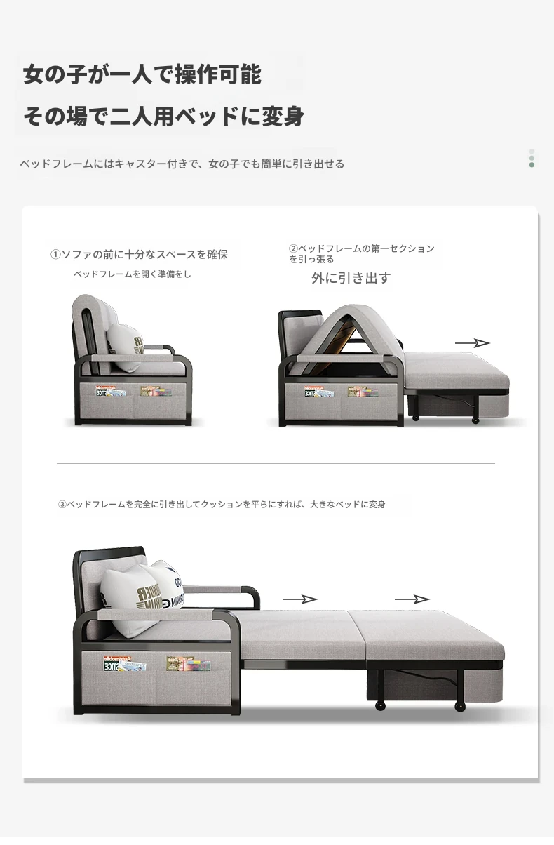 折りたたみソファベッド|小型リビングに最適な多機能伸縮ソファ|ネットで人気の洗える布製シングルソファベッド|スペースを有効活用して快適な空間を演出!