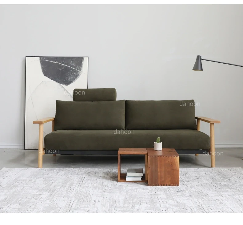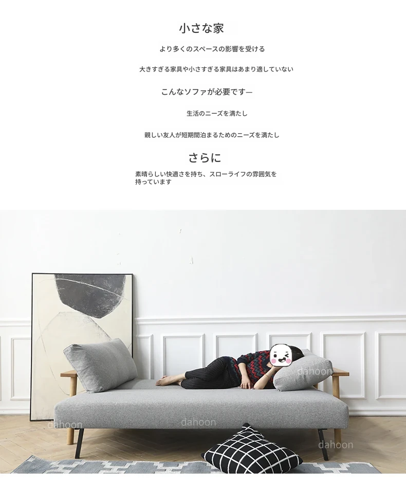 北欧スタイルの多機能ソファベッド - 引き出し可能で洗える、コンパクトな小型リビングに最適!実木フレームで高品質、スタイリッシュなデザインでおしゃれな空間を演出します。