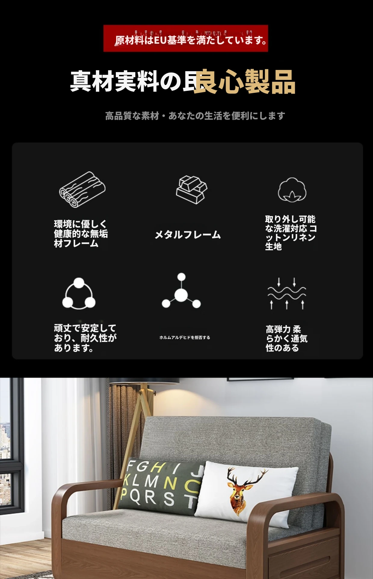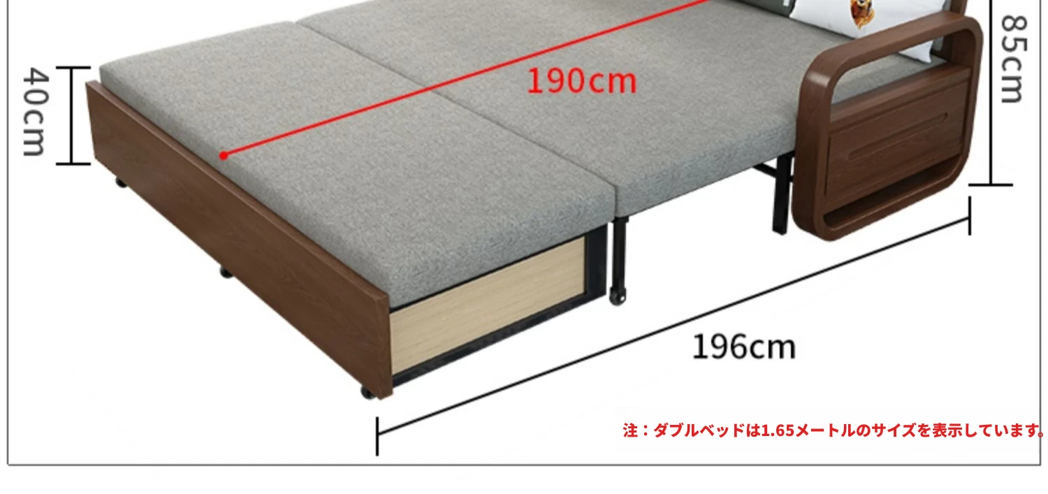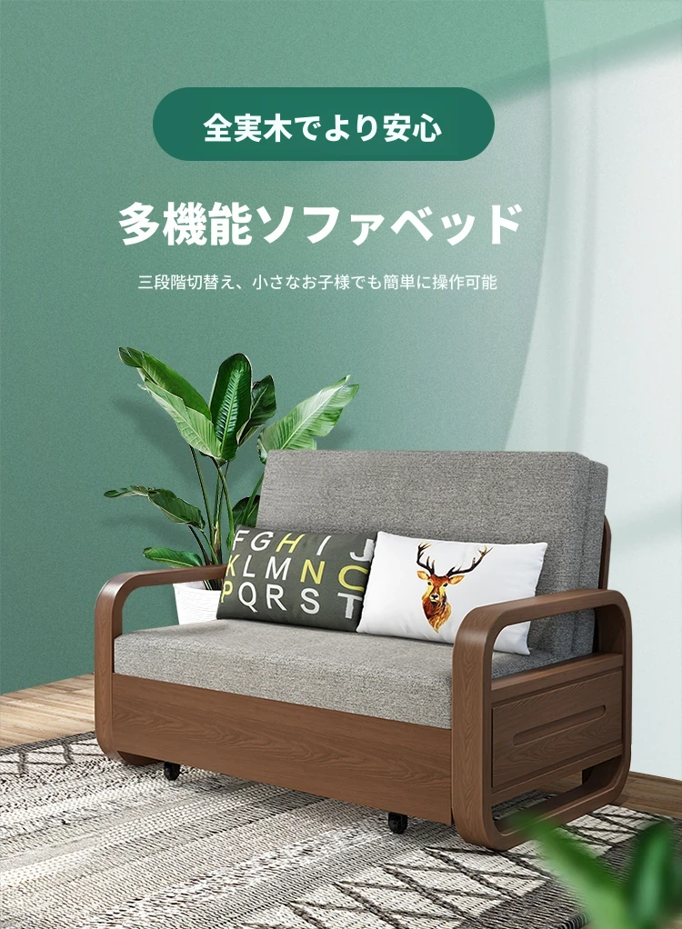 一人用実木ソファベッド|2WAY機能付き、折りたたみ式のコットンリネンソファ|小スペースに最適な書斎やバルコニー用伸縮ベッド!快適さと機能性を兼ね備えた一品。
