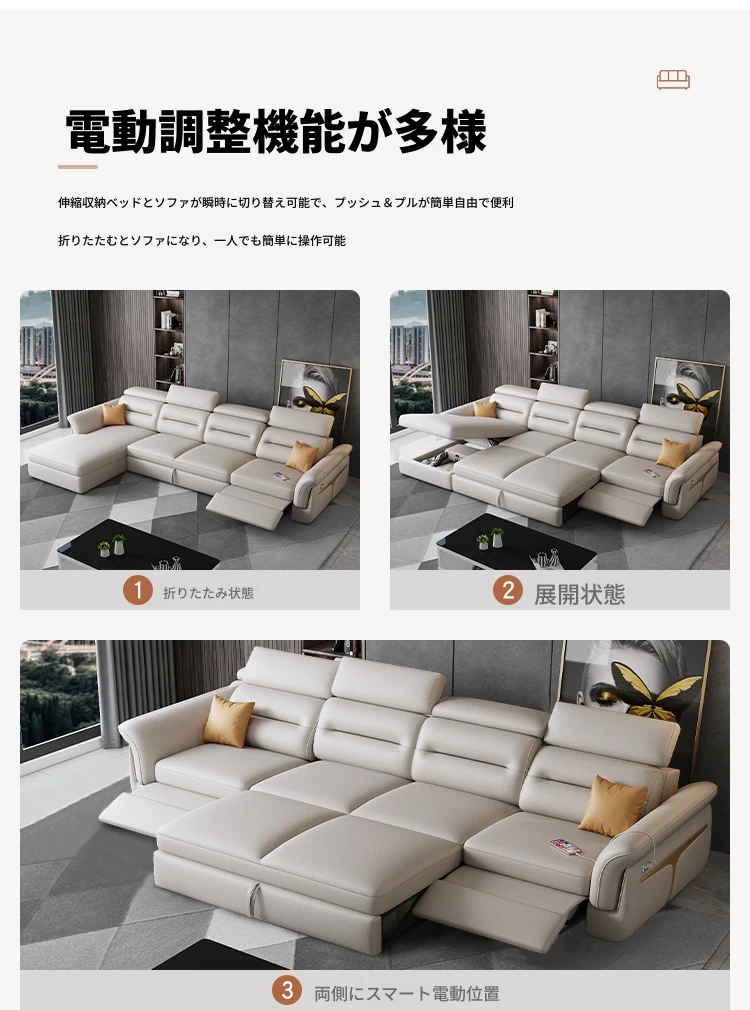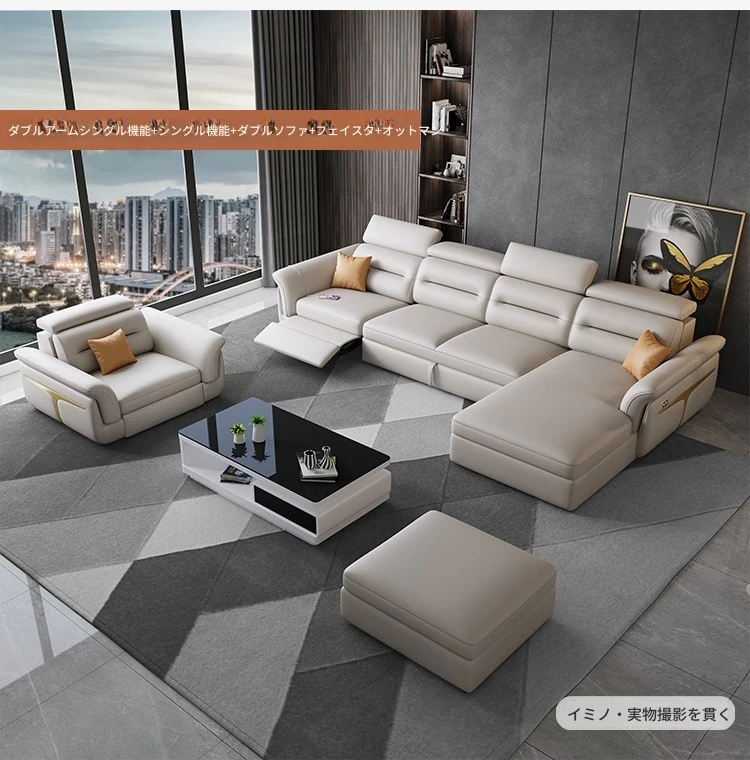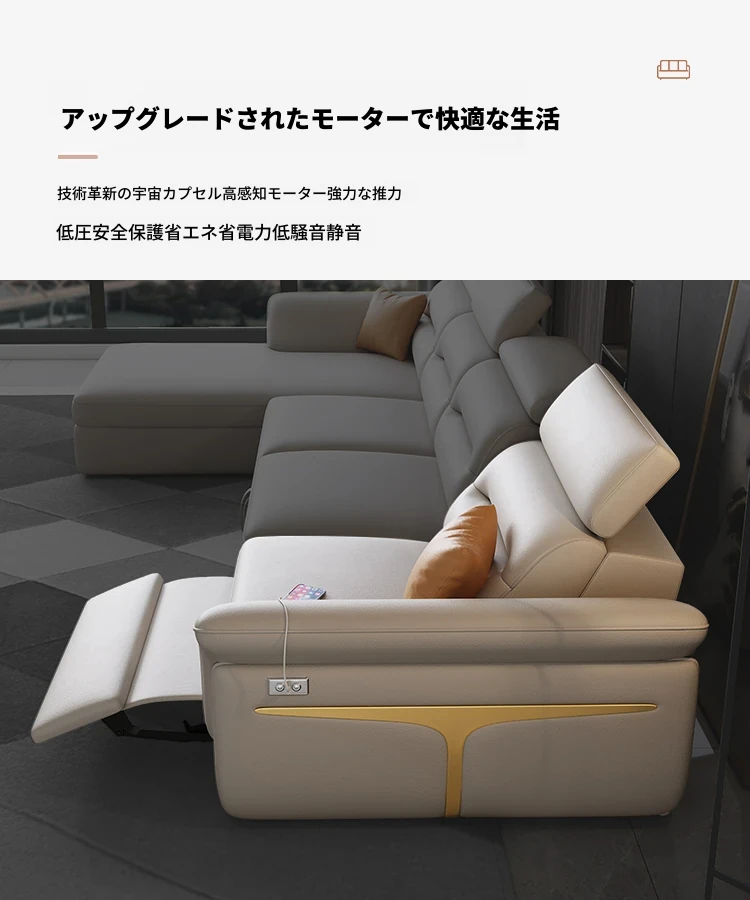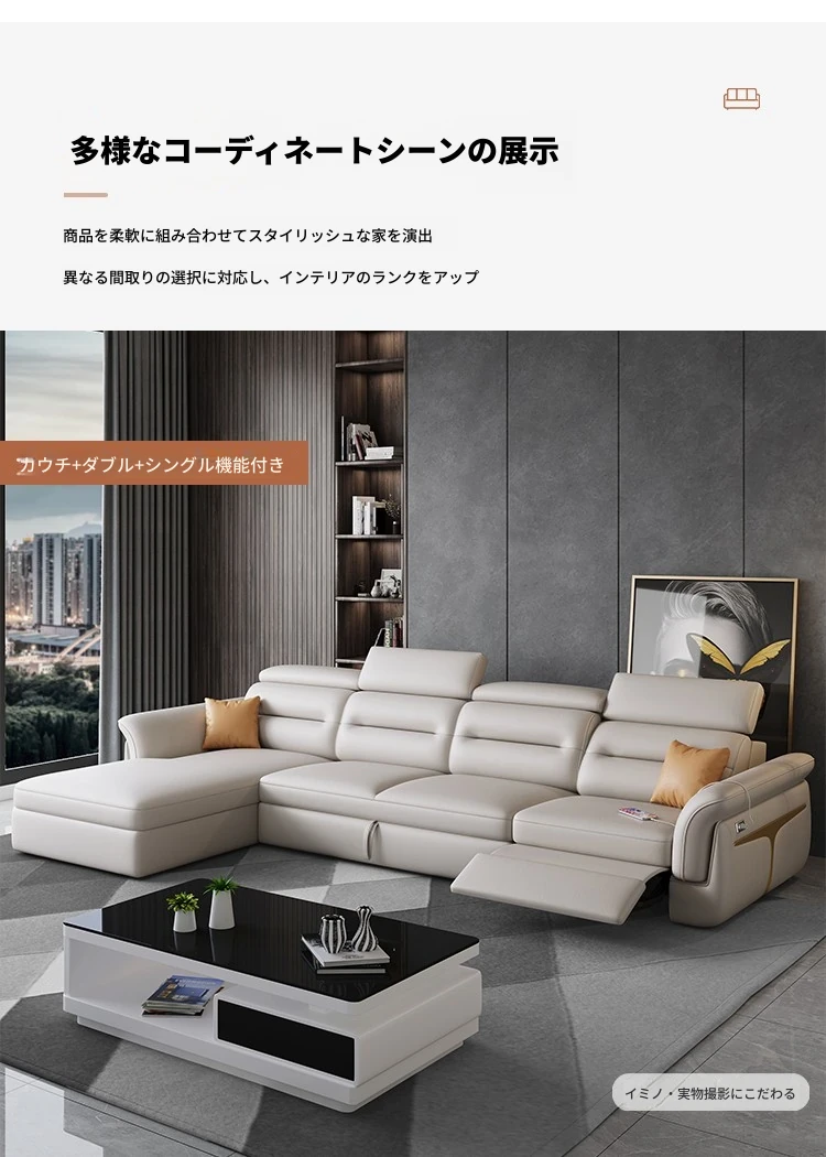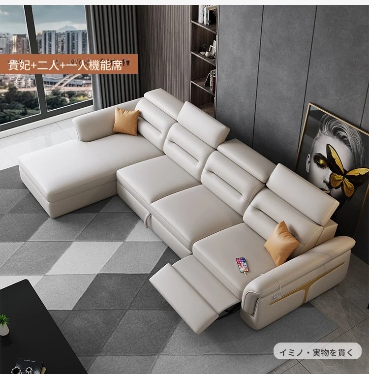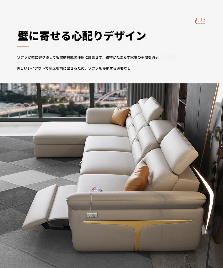 多機能本革ソファ|イタリアンラグジュアリーの現代的リビング家具|壁に寄せずに置ける電動本皮ソファセット|快適さとスタイルを両立した上質な空間を演出!