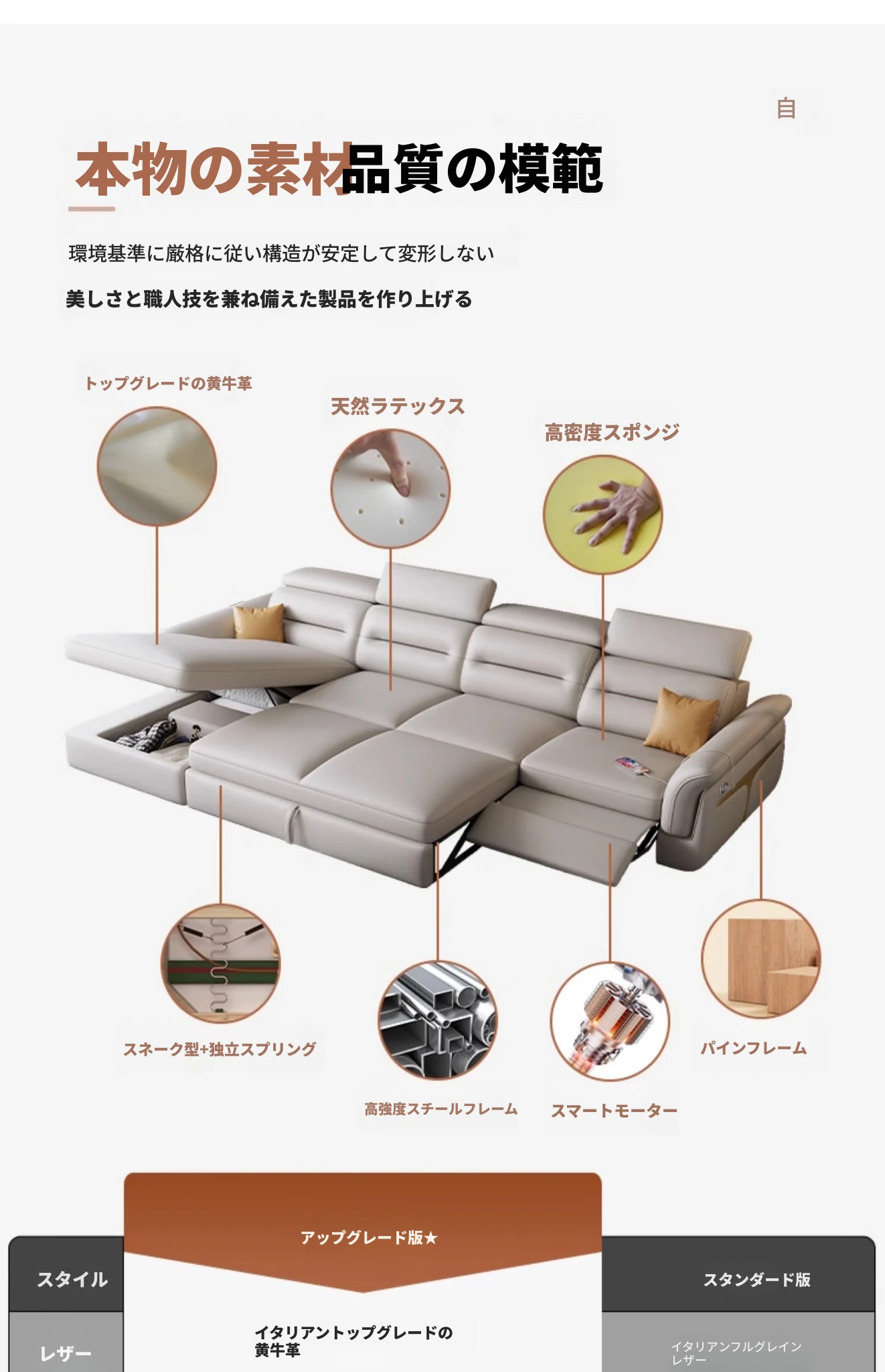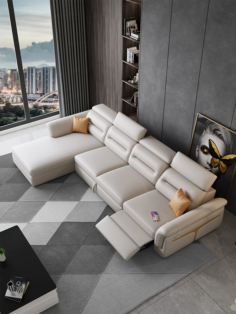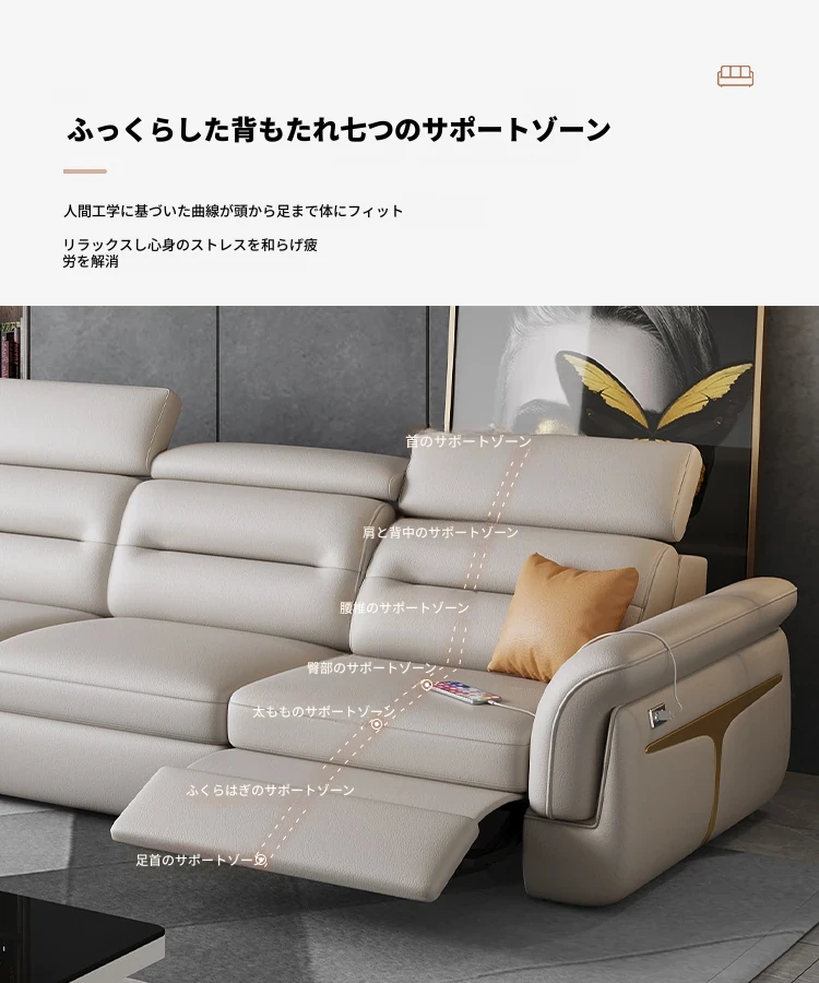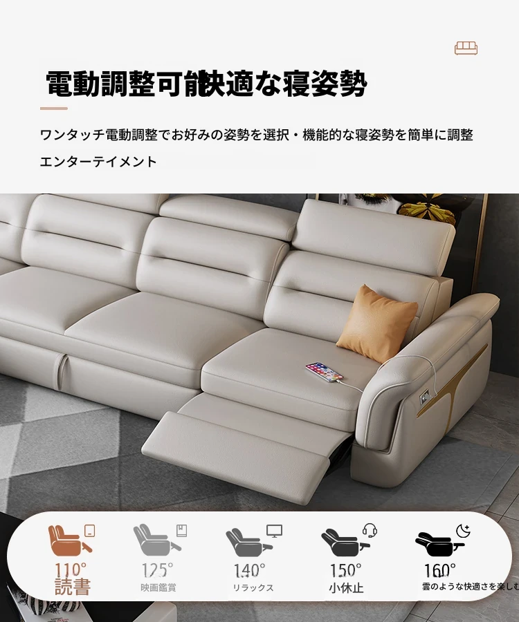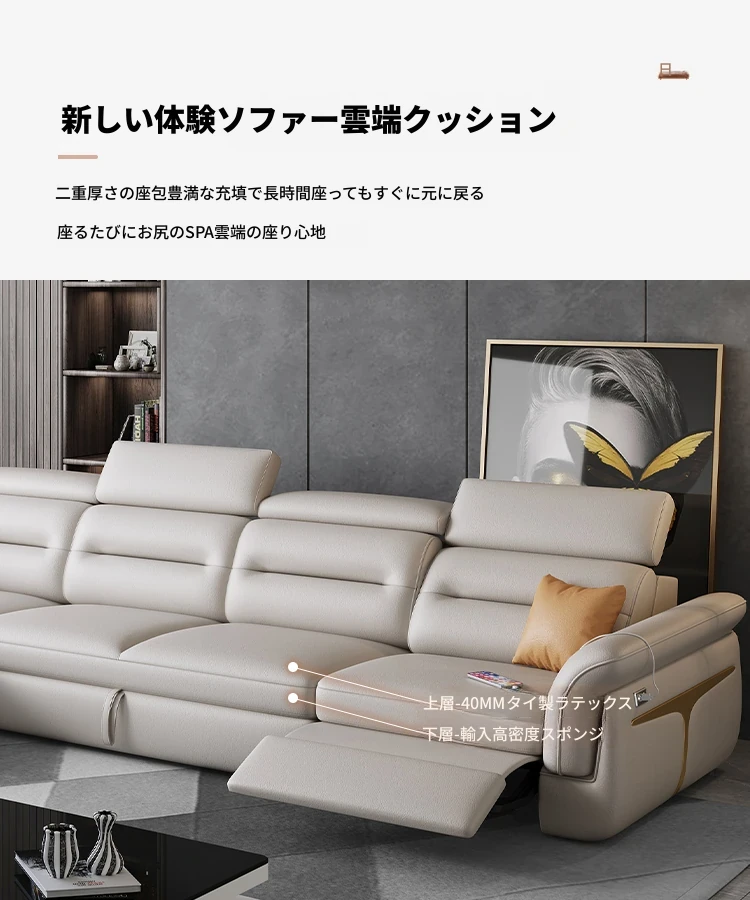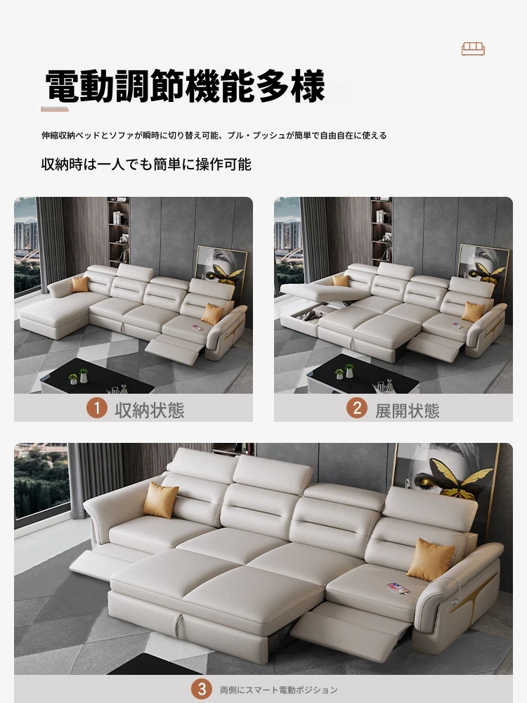 多機能本革ソファ|イタリアンラグジュアリーの現代的リビング家具|壁に寄せずに置ける電動本皮ソファセット|快適さとスタイルを両立した上質な空間を演出!