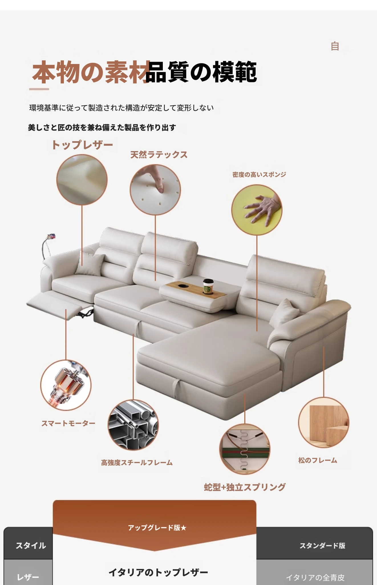 新作!高級本革使用の北欧スタイル・シンプルモダンソファ。リビングにぴったりな直線デザイン、大小様々な間取りに対応した貴族的な組み合わせ、軽やかなラグジュアリー感を演出します。