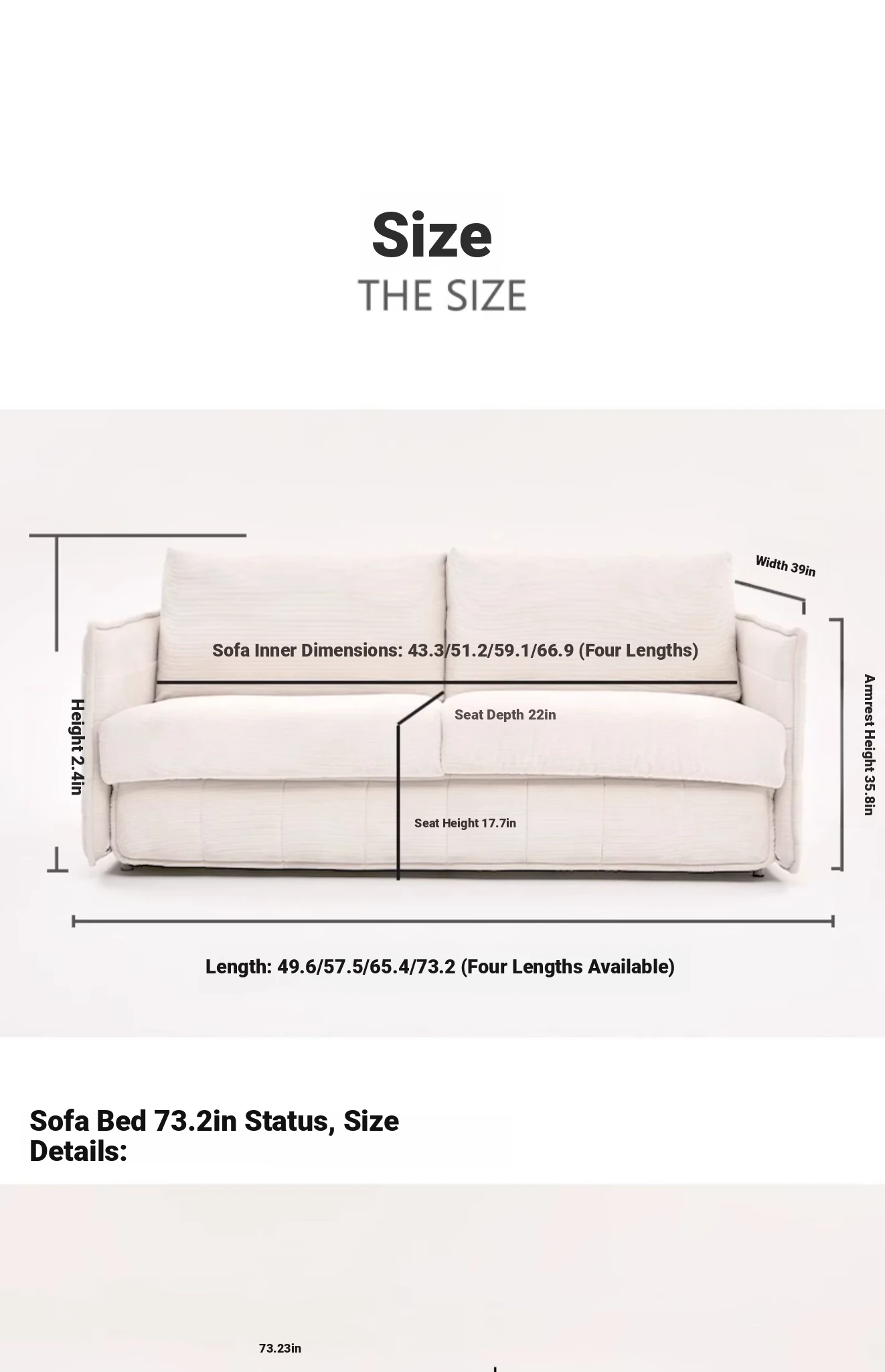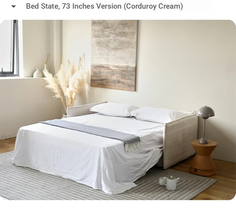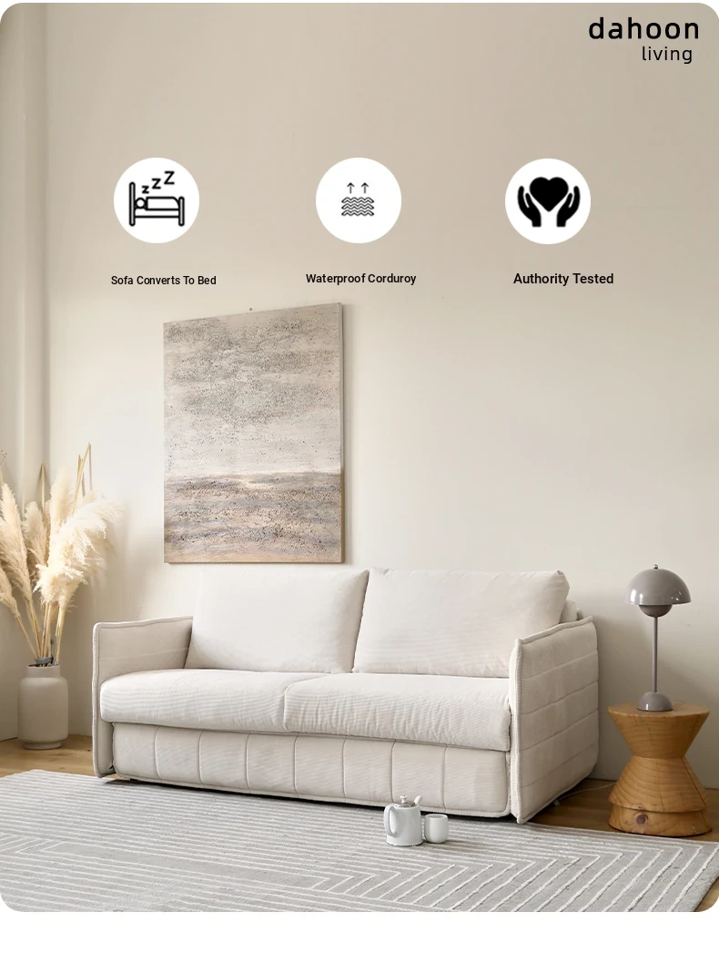 Nordic Cream Waterproof Corduroy Sofa Bed - Foldable, Removable, and Multifunctional for Small Spaces