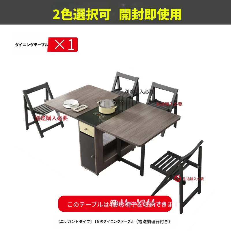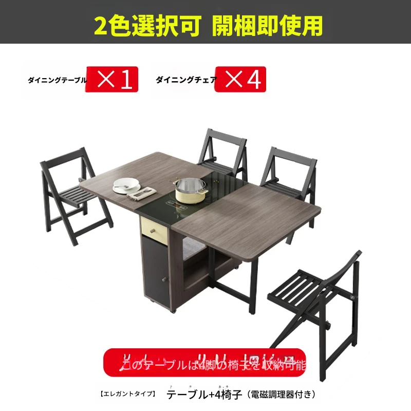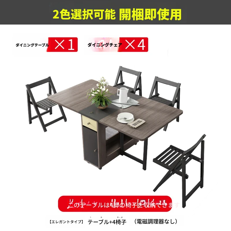 1.5メートル折りたたみダイニングテーブル(電磁調理器付き)+4椅子