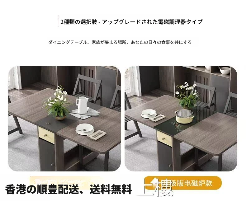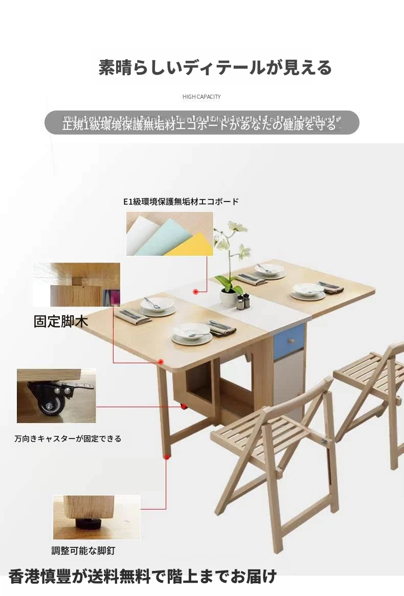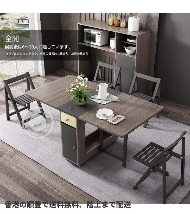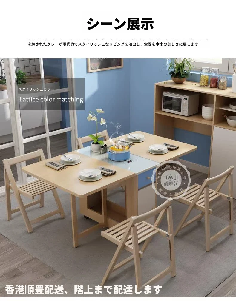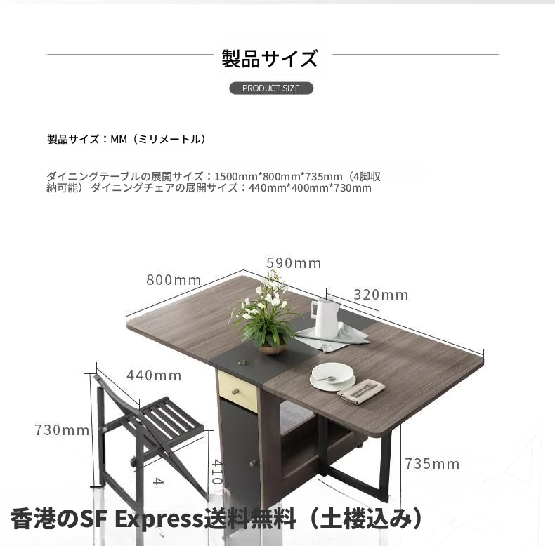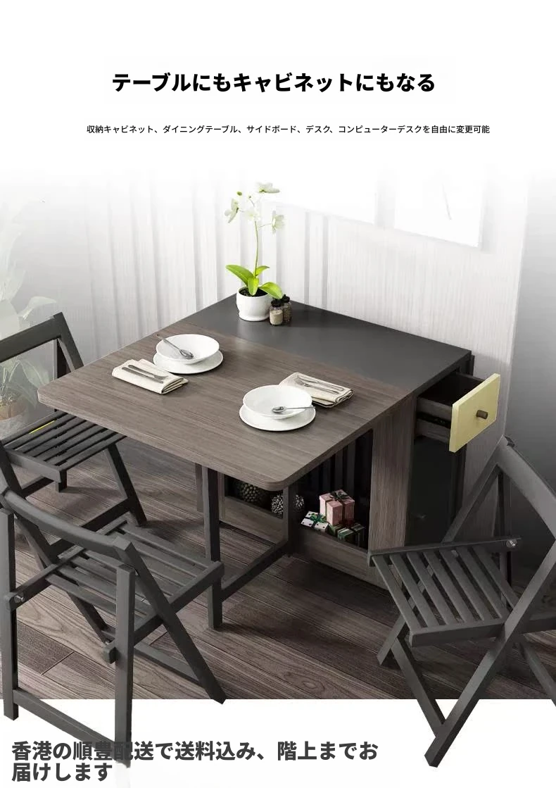 【香港発】北欧スタイルの多機能折りたたみテーブル&チェアセット!現代的でシンプルなデザイン、小さなスペースにも最適。伸縮可能で、家族や友人との食事にぴったり!