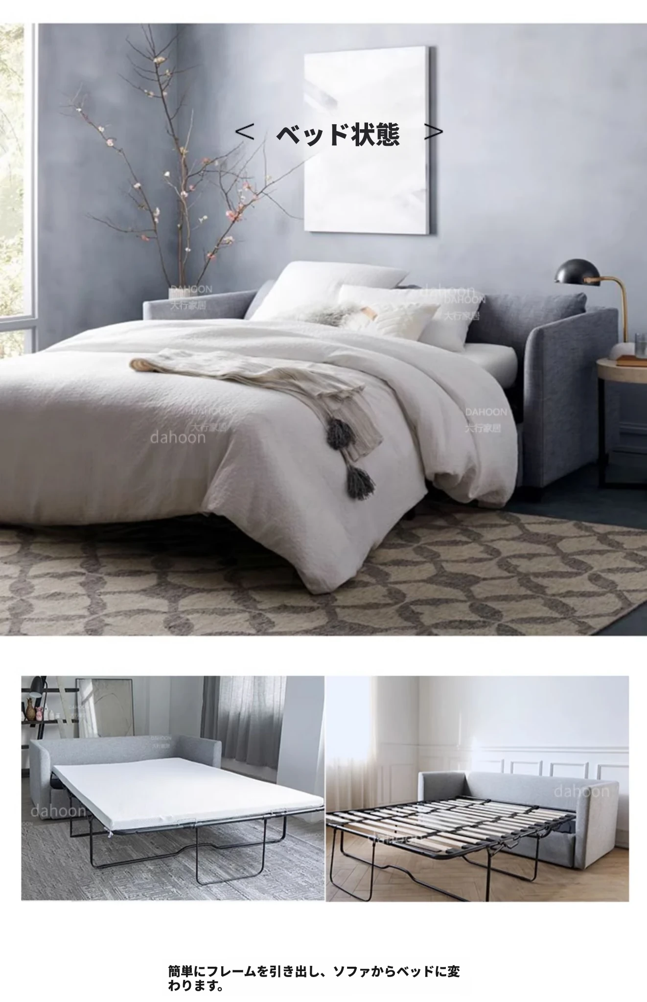 北欧スタイルの折りたたみ式ファブリックソファベッド - プルダウン機能付き、座り心地抜群の2wayデザインで、小さなリビングにも最適!多機能で家族団らんのひとときをもっと快適に。