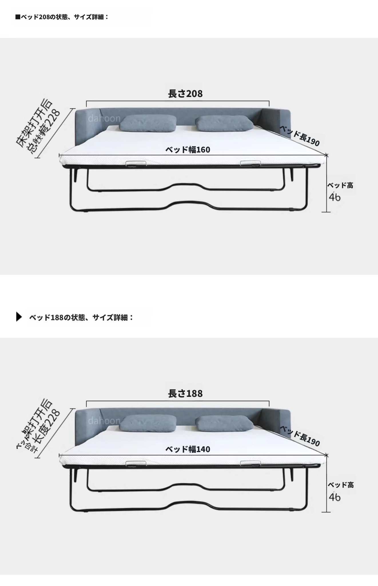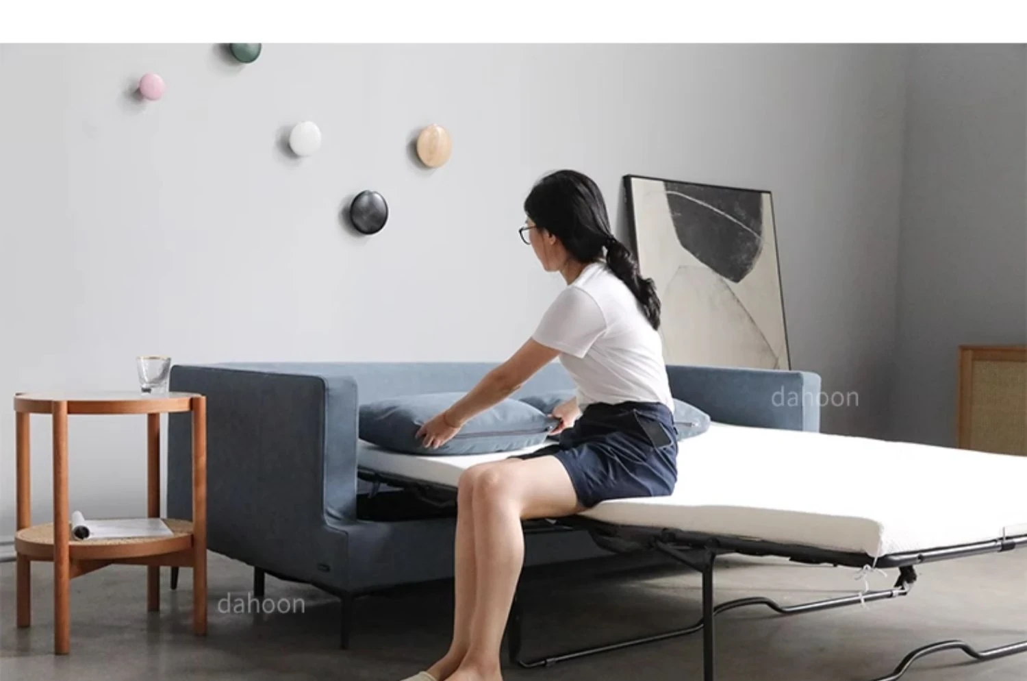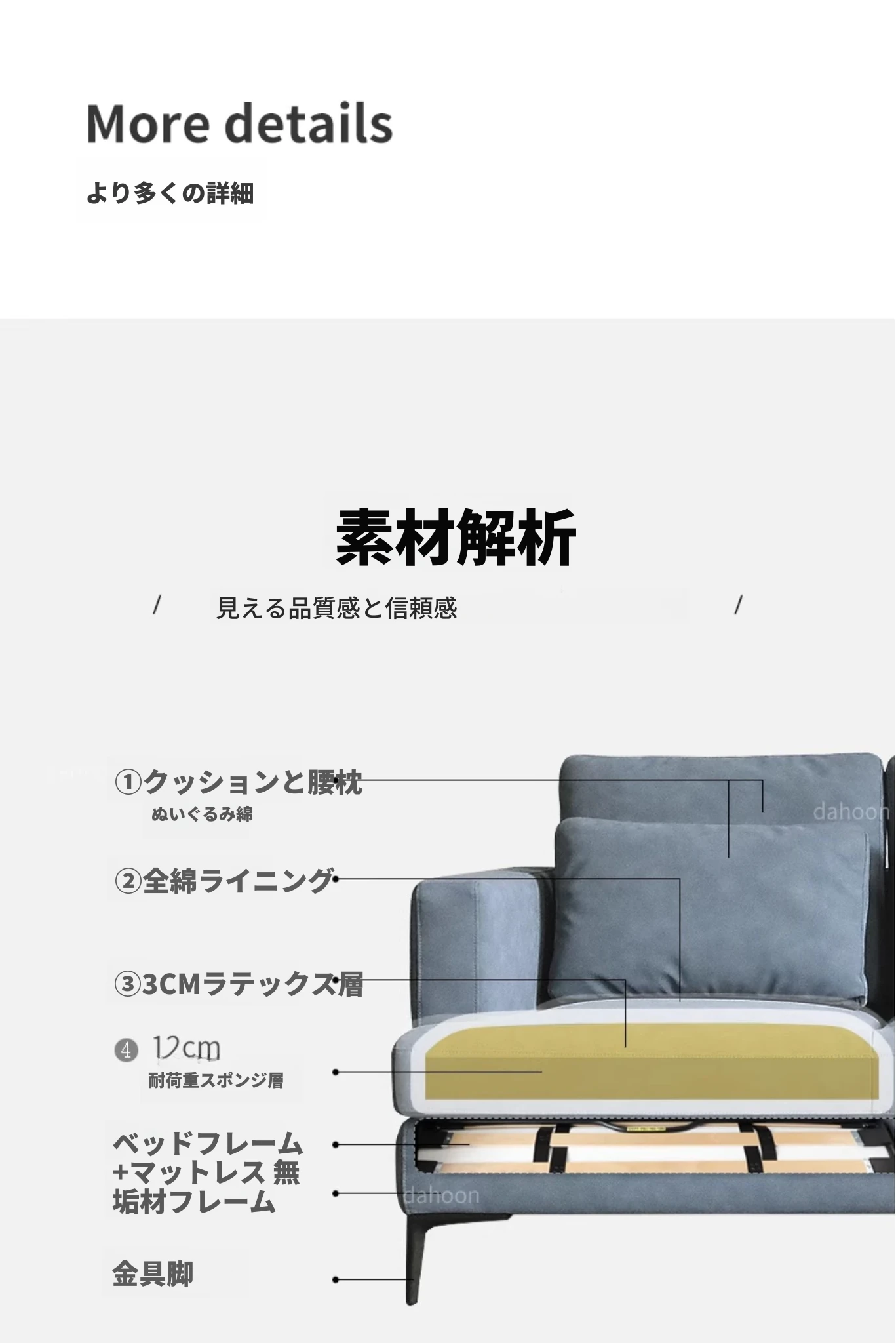 北欧スタイルのソファベッド、テクノロジー布製でお手入れ簡単!2WAY機能と折りたたみ可能なデザイン、ラテックスマット付きで小さなリビングに最適。快適な空間を演出します!
