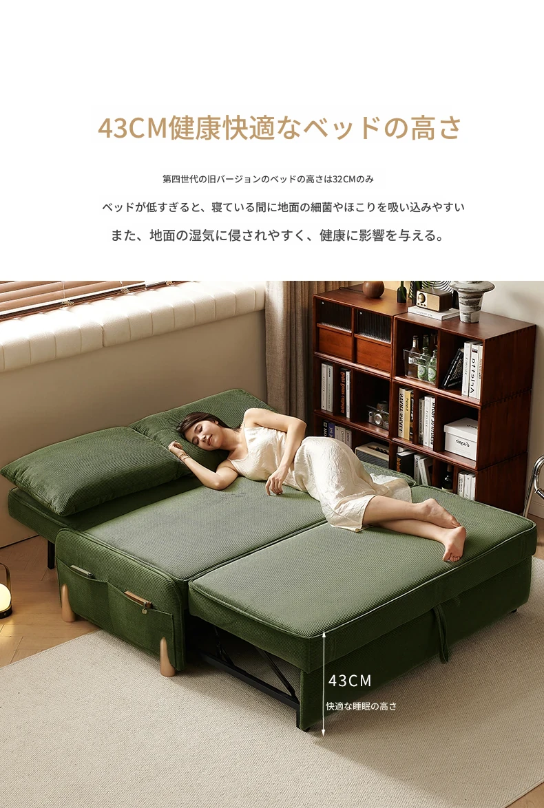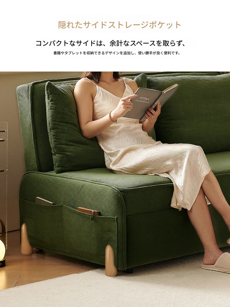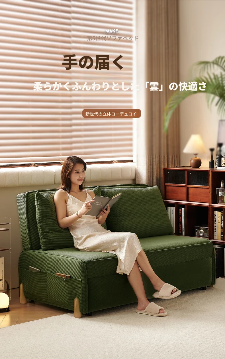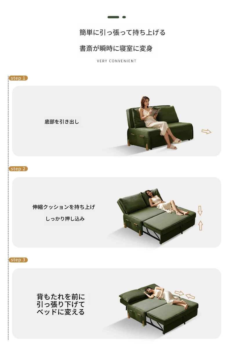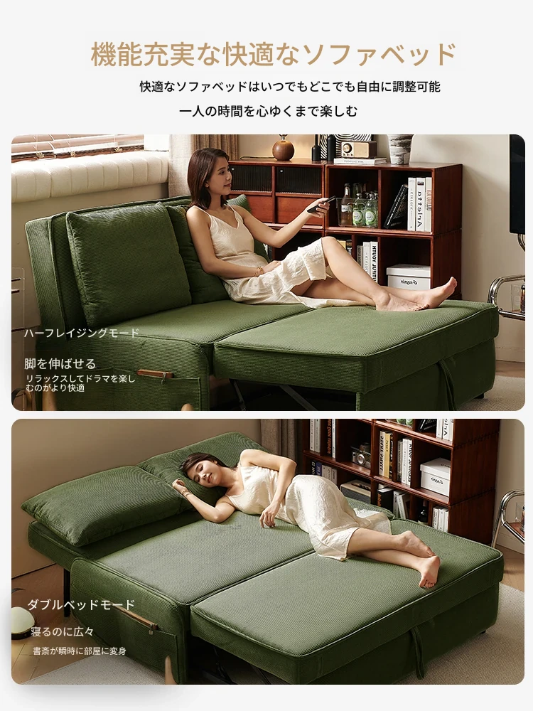 高級折りたたみソファベッド 二人用 無垢材製 コンパクトなリビングや書斎に最適 多機能スライド伸縮ベッドでスペースを有効活用!