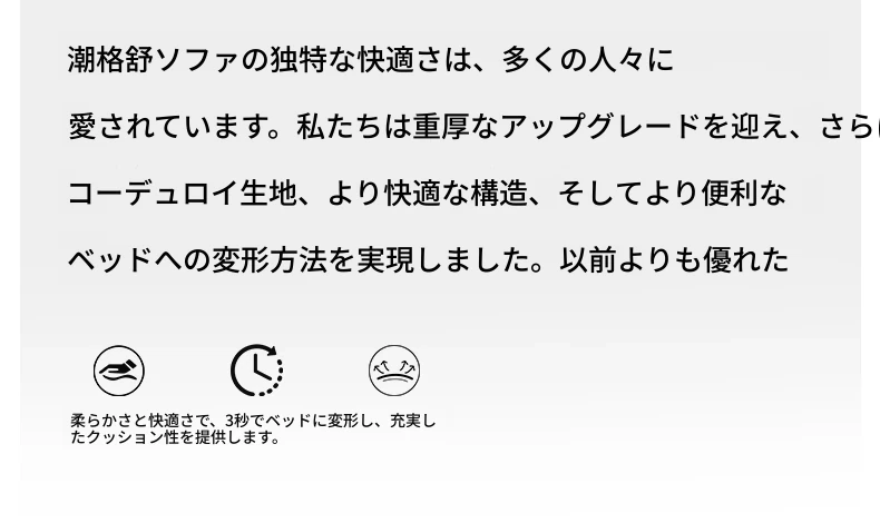 1.05メートル スポンジタイプ【コーデュロイ】第5世代ソファベッド