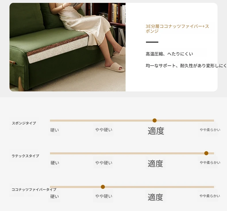 1.65メートル ココナッツファイバータイプ【コーデュロイ】第5世代ソファベッド