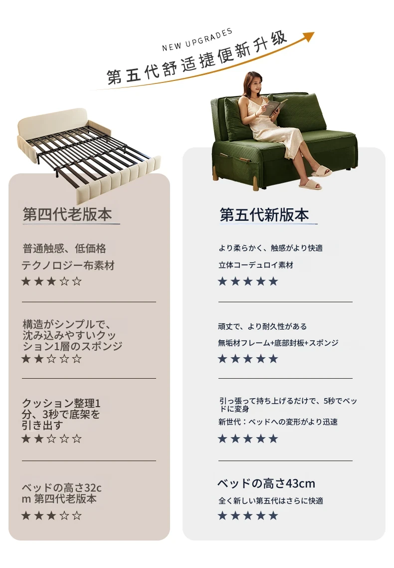 1.50メートル スポンジタイプ【コーデュロイ】第5世代ソファベッド