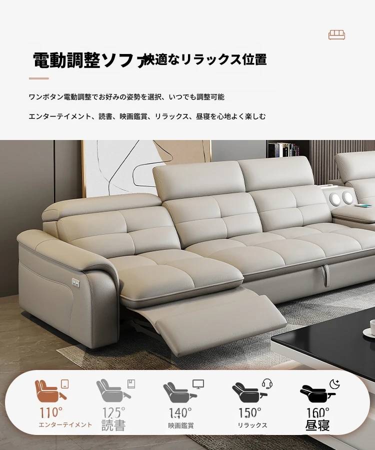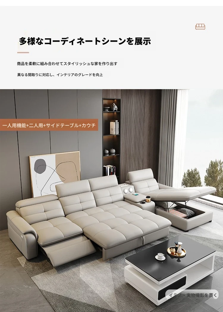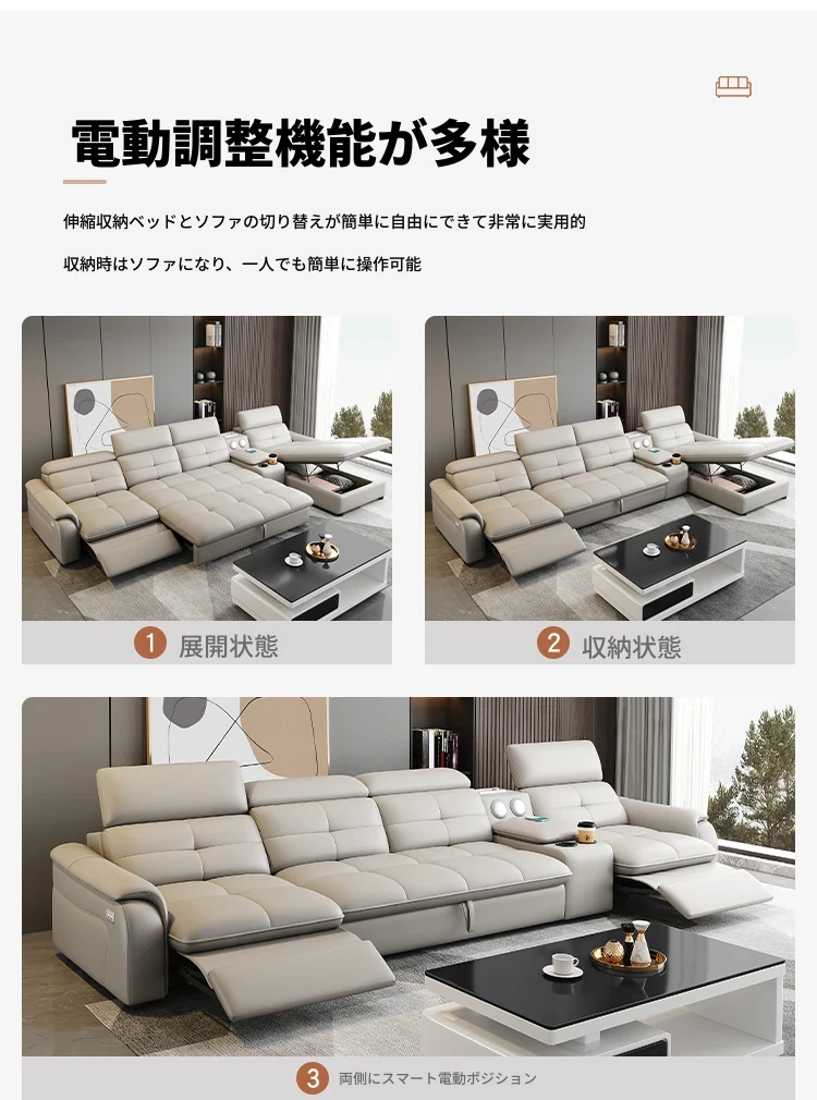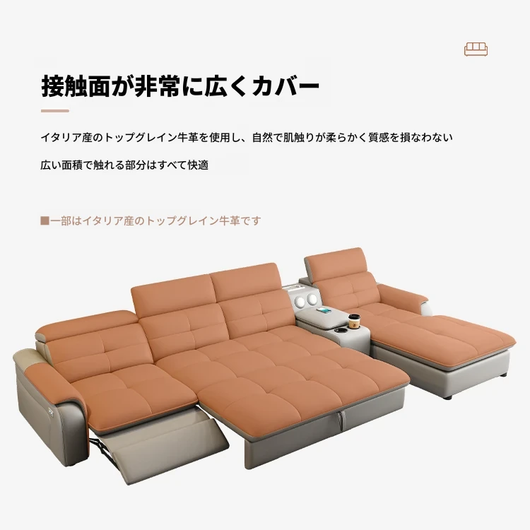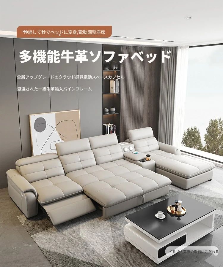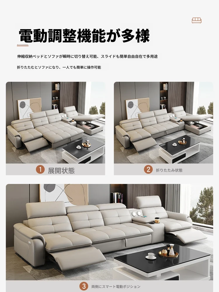 高級本革マルチ機能ソファベッド - 電動折りたたみ式、大小様々なリビングルームに最適なモダンラグジュアリーデザイン!快適さとスタイルを両立させた、あなたの生活空間を格上げするアイテムです。
