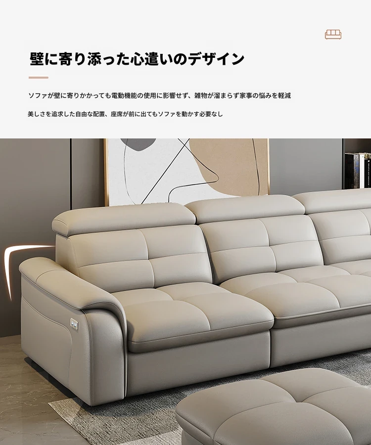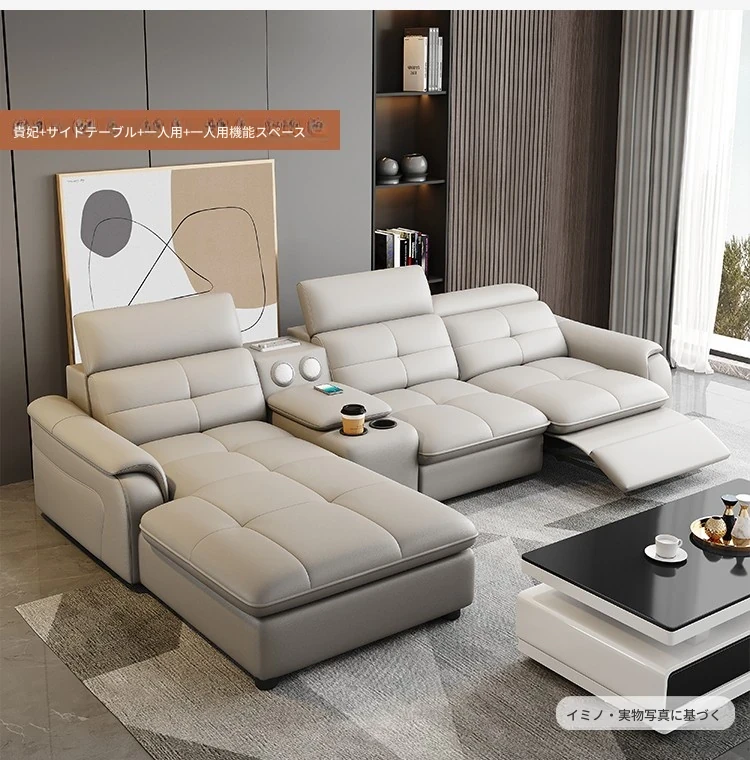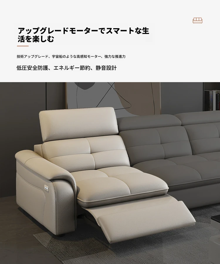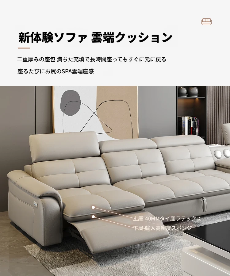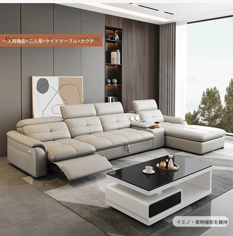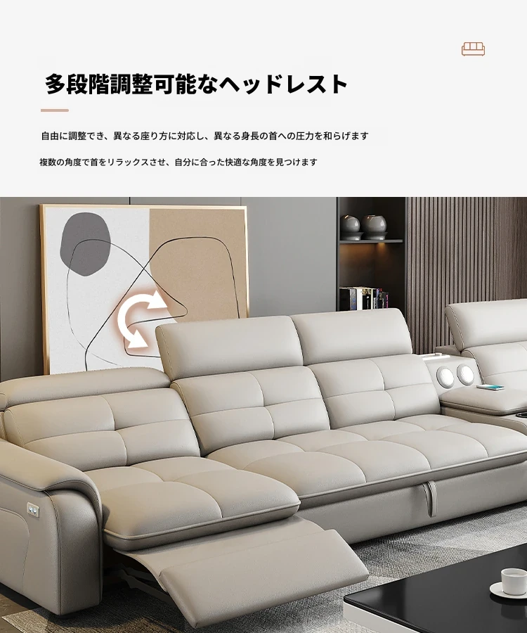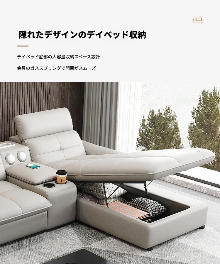 高級本革マルチ機能ソファベッド - 電動折りたたみ式、大小様々なリビングルームに最適なモダンラグジュアリーデザイン!快適さとスタイルを両立させた、あなたの生活空間を格上げするアイテムです。