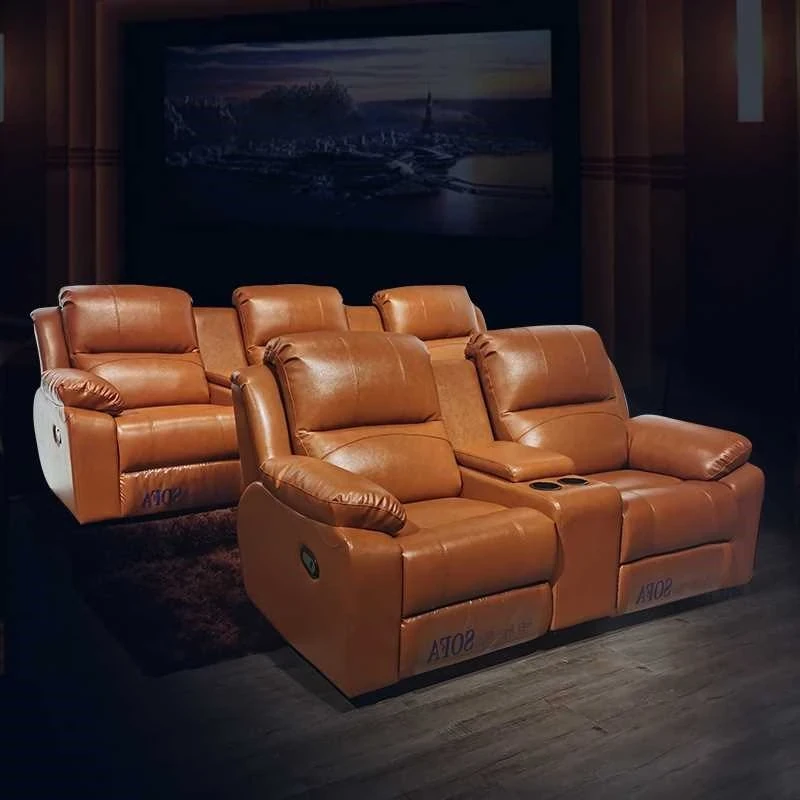 プレミアム宇宙カプセルレザーシアターソファー - 電動機能付きプライベートシアタールーム用!家庭用シアターに最適な快適さとスタイルを兼ね備えたソファです。