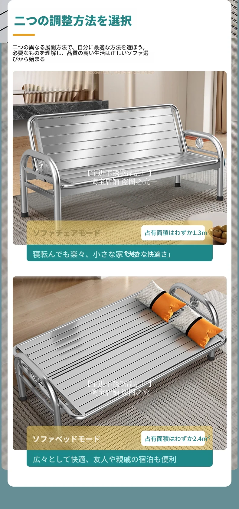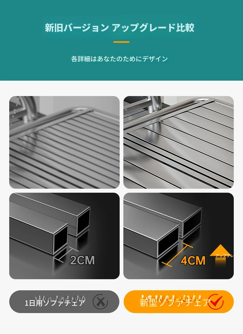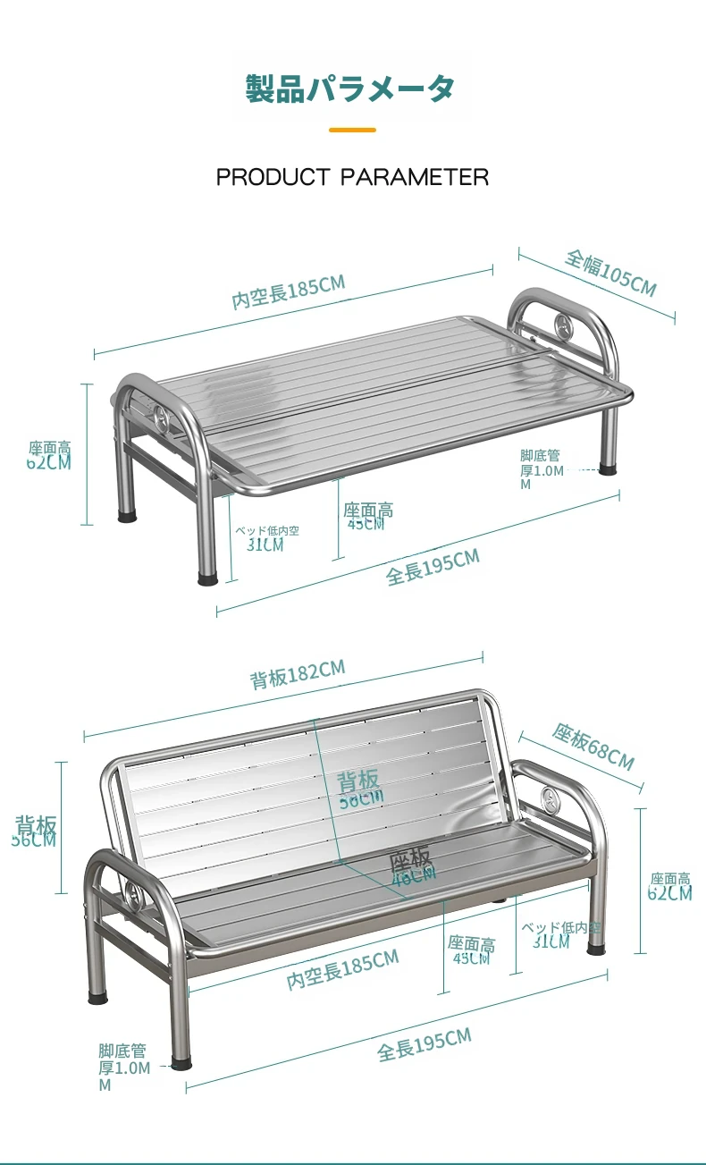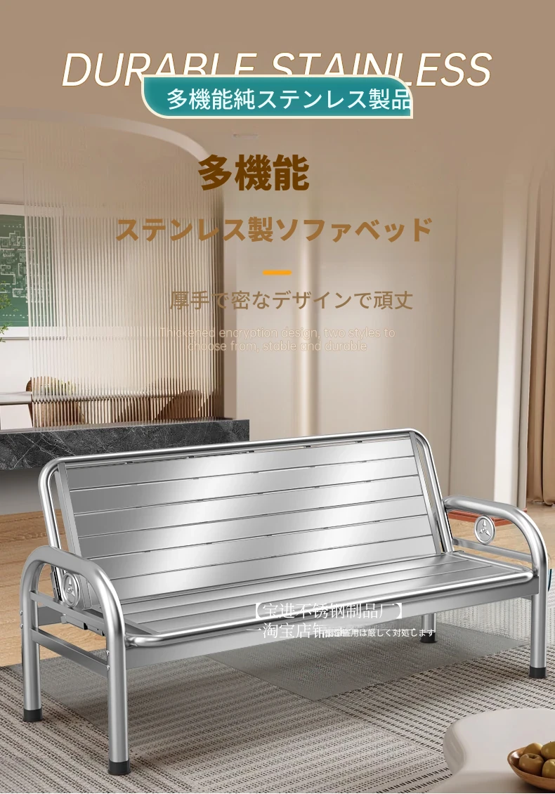 厚手不锈鋼ソファベッド|折りたたみ式の多機能ソファベッド|田舎の家庭に最適なリビング用|快適な座り心地と便利さを兼ね備えたロングベンチ!