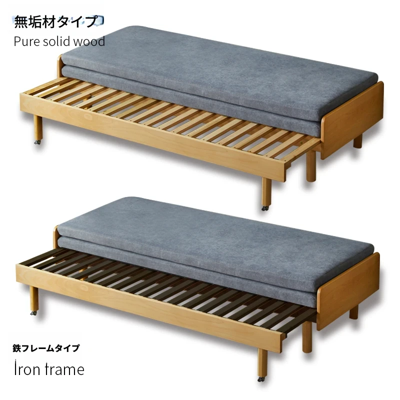 伸縮式ベッド 小型リビングに最適!天然木製の折りたたみソファベッド。2WAYデザインで、ダブル&シングル両用。アイアンプッシュプル機構で簡単に操作!省スペースでスタイリッシュな生活を実現します!