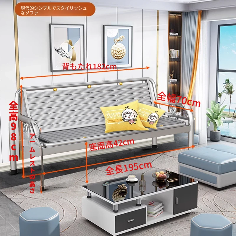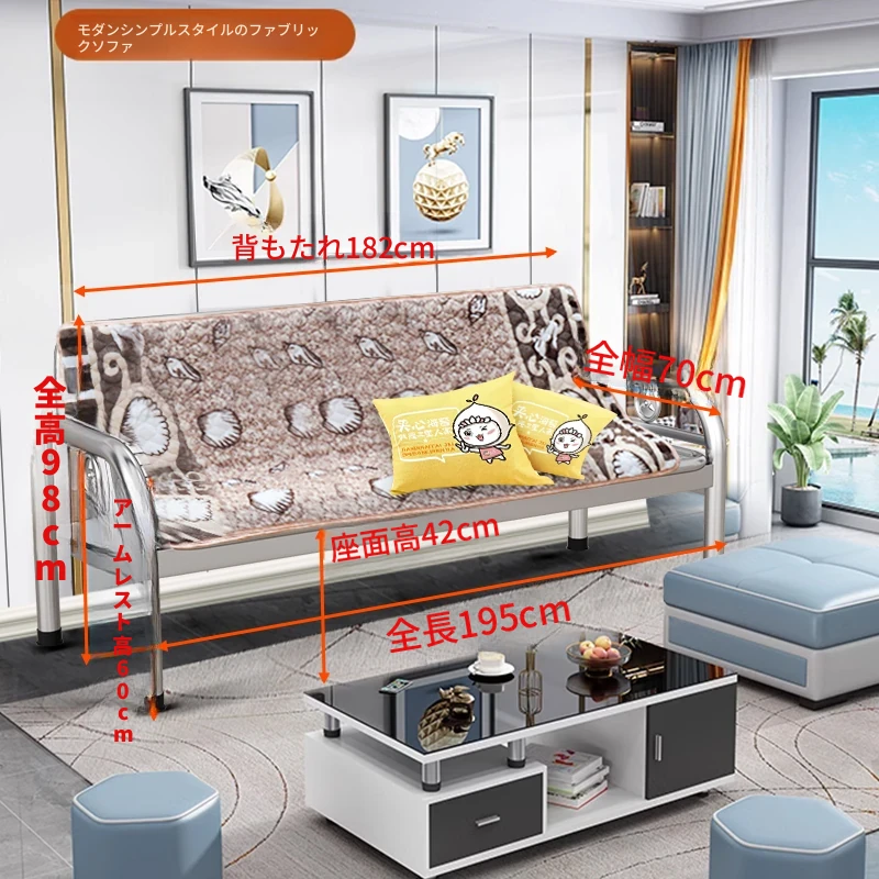 304#厚手タイプ(有球)丸脚丸管加密平板ソファ+マットレス(三人用)