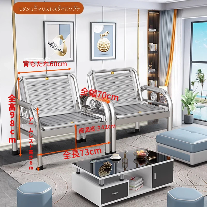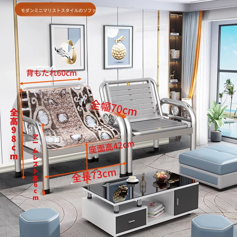 304#厚手タイプ(無球)丸脚丸管加密平板ソファ(一人用)