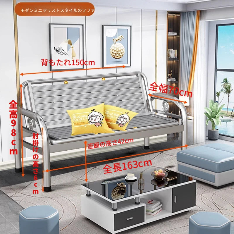 304#厚手強化タイプ(有球)丸脚丸管加密平板ソファ(三人用)