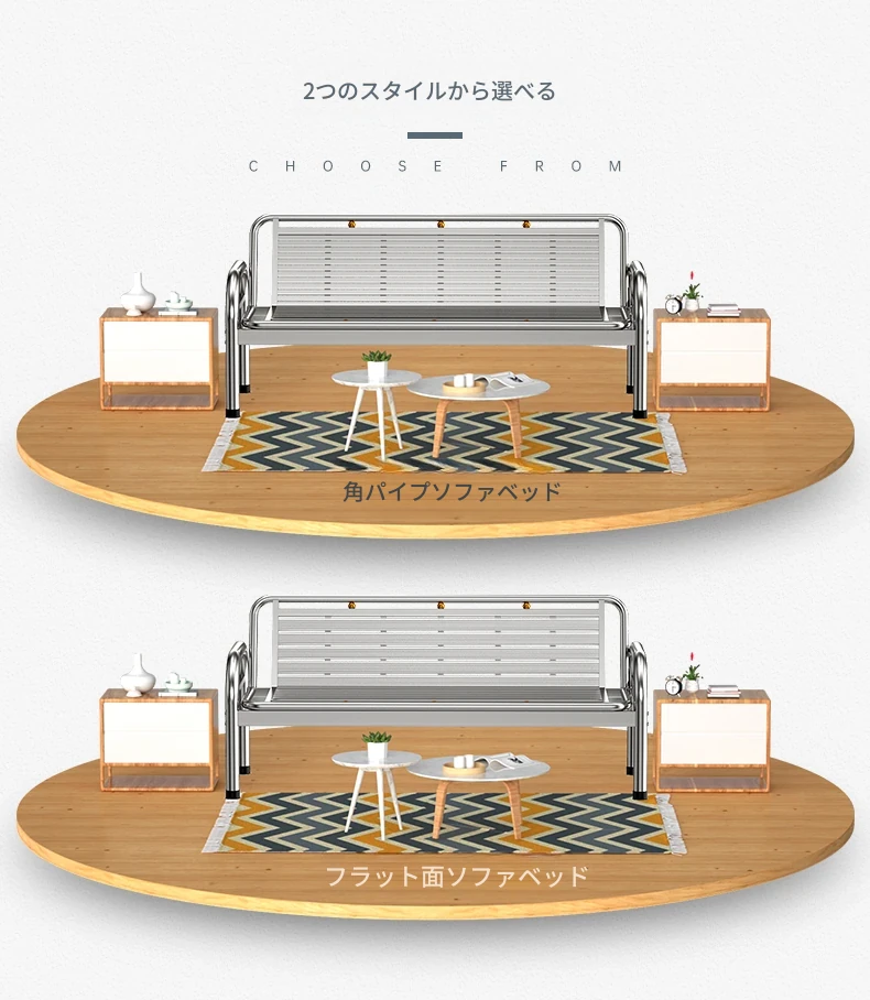 304#厚手タイプ(有球)丸脚丸管加密平板ソファ+マットレス(一人用)