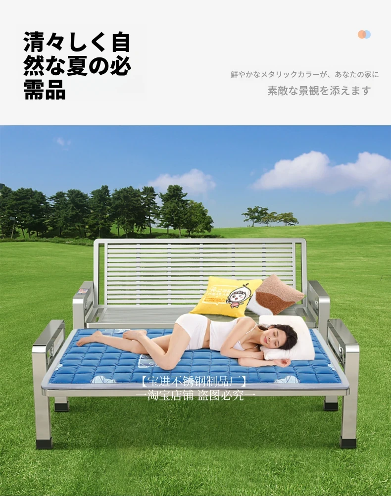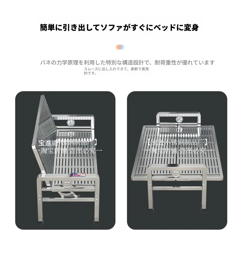 ステンレス製ソファー|厚手で頑丈!家庭用・オフィス用に最適な折りたたみ二用途モダンアイアンベンチ・椅子【シンプルでスタイリッシュなデザイン】
