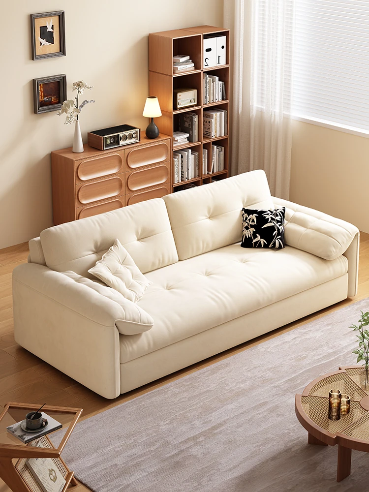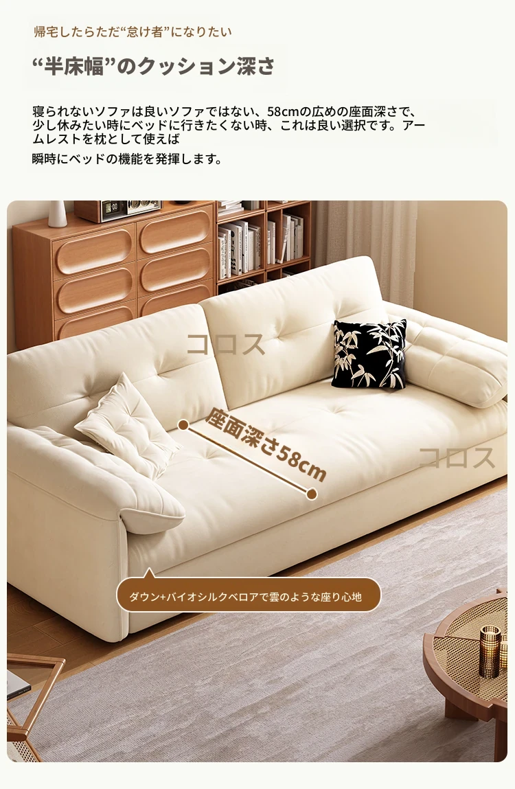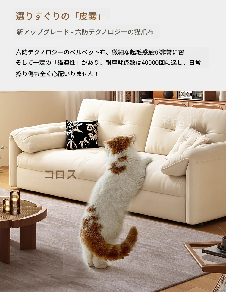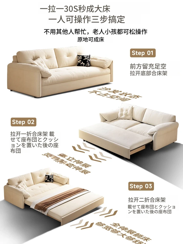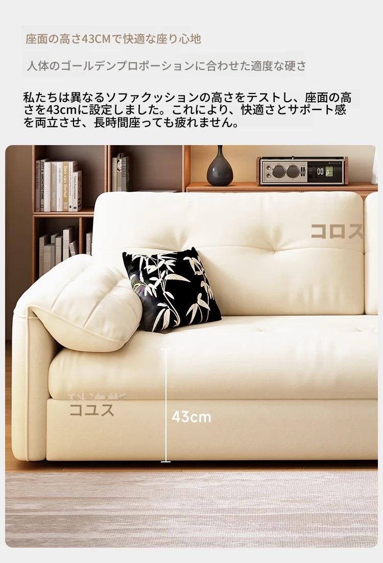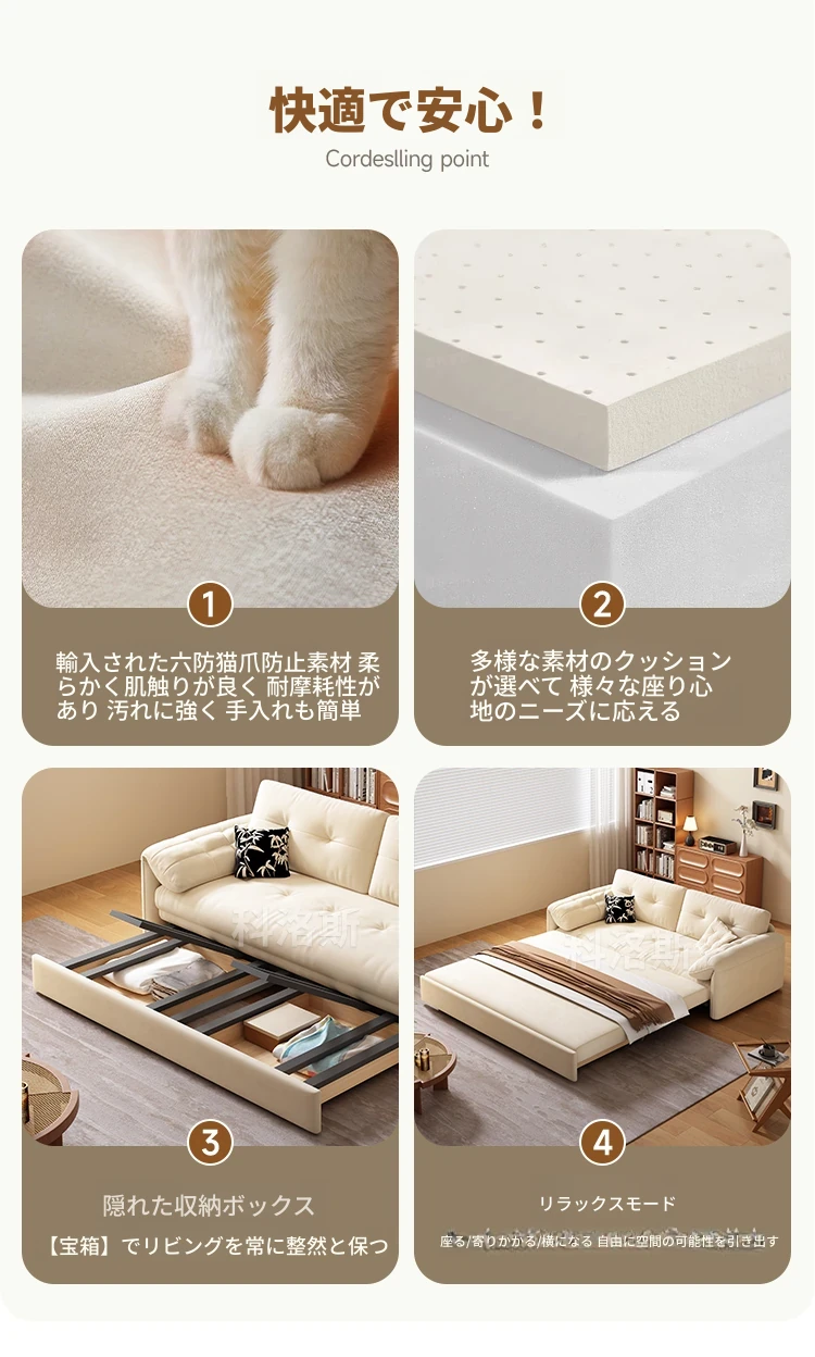 天然木材使用のクリーム風ソファベッド、エレファントイヤーデザイン!人気の折りたたみ式・多機能タイプ、小型スペースにもぴったり、伸縮可能で収納も充実。おしゃれな空間を演出します!