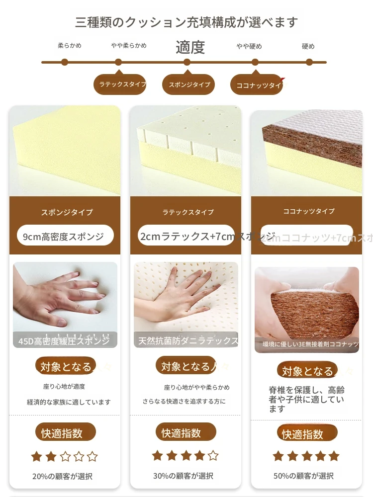 肘掛け付き1.7メートル-背中を守るココナッツタイプ-収納付き