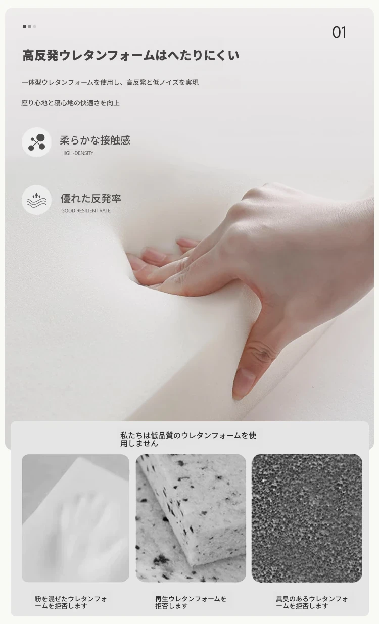 肘掛け付き1.7メートル-高弾性スポンジタイプ-収納付き