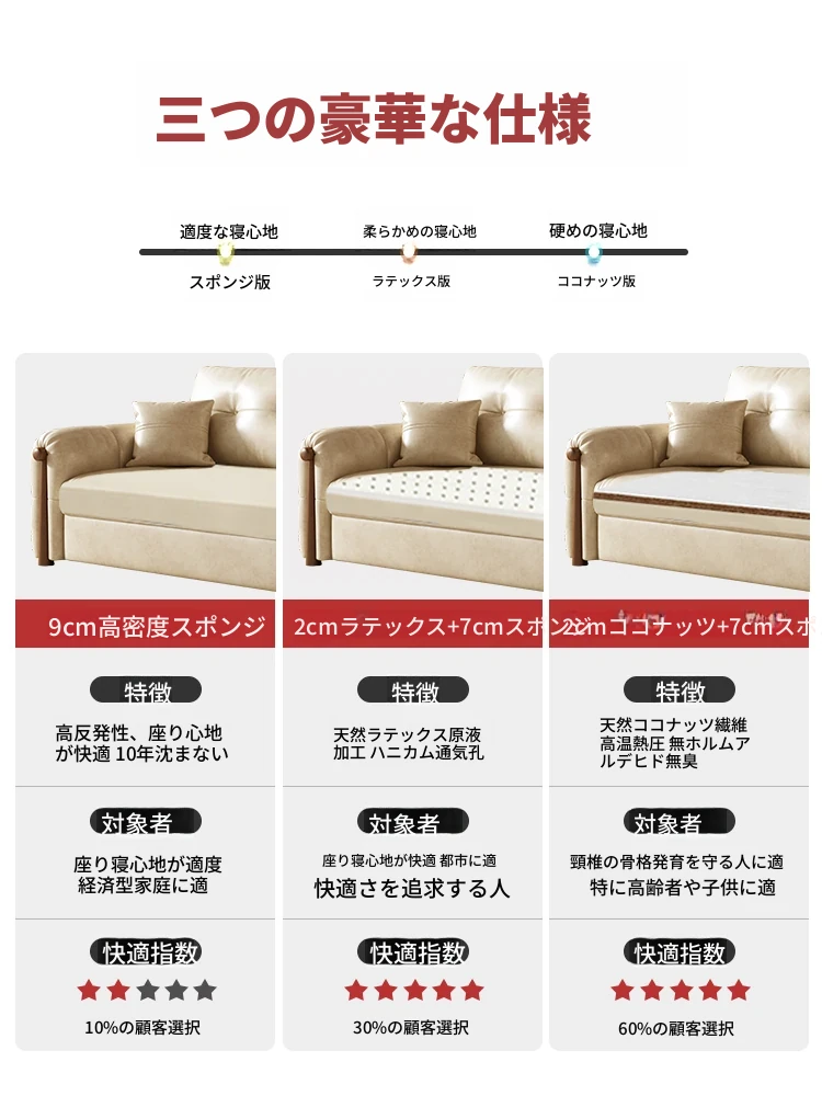 (効果的な背骨サポート)1.86mソファベッド【環境保護ココナッツファイバータイプ|レトロオイルワックス本革】