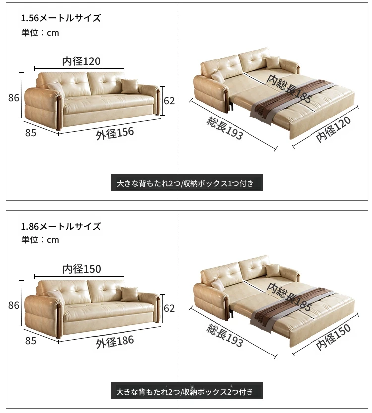 (効果的な背骨サポート)1.56mソファベッド【環境保護ココナッツファイバータイプ|レトロオイルワックス本革】