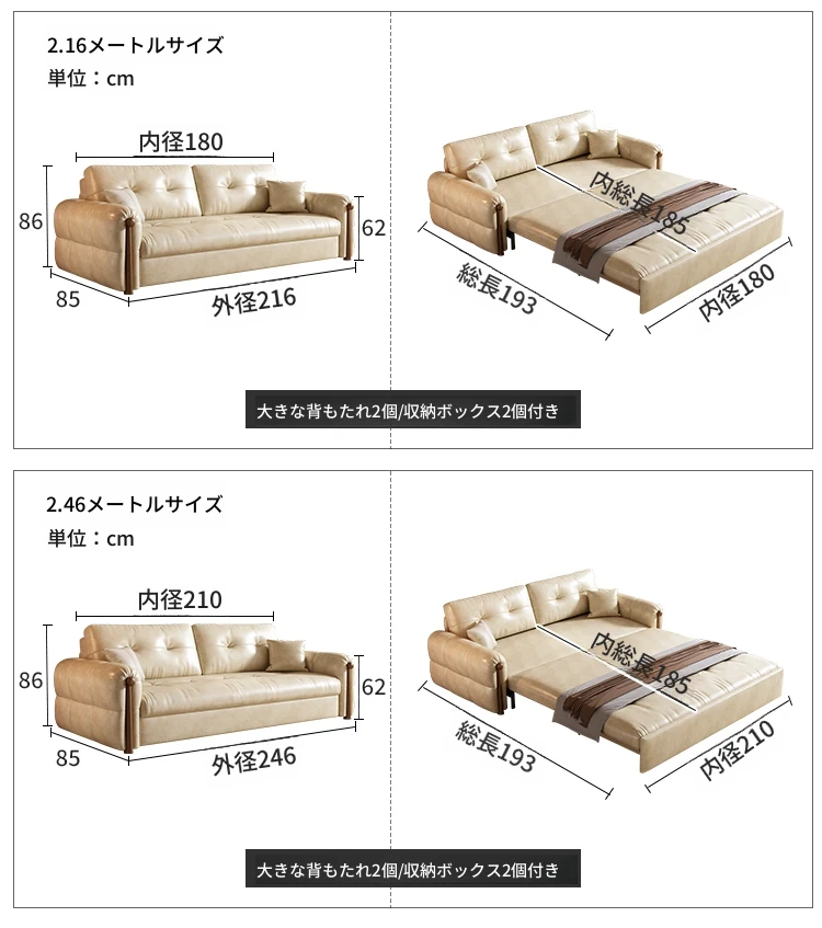 (効果的な背骨サポート)2.16mソファベッド【環境保護ココナッツファイバータイプ|レトロオイルワックス本革】