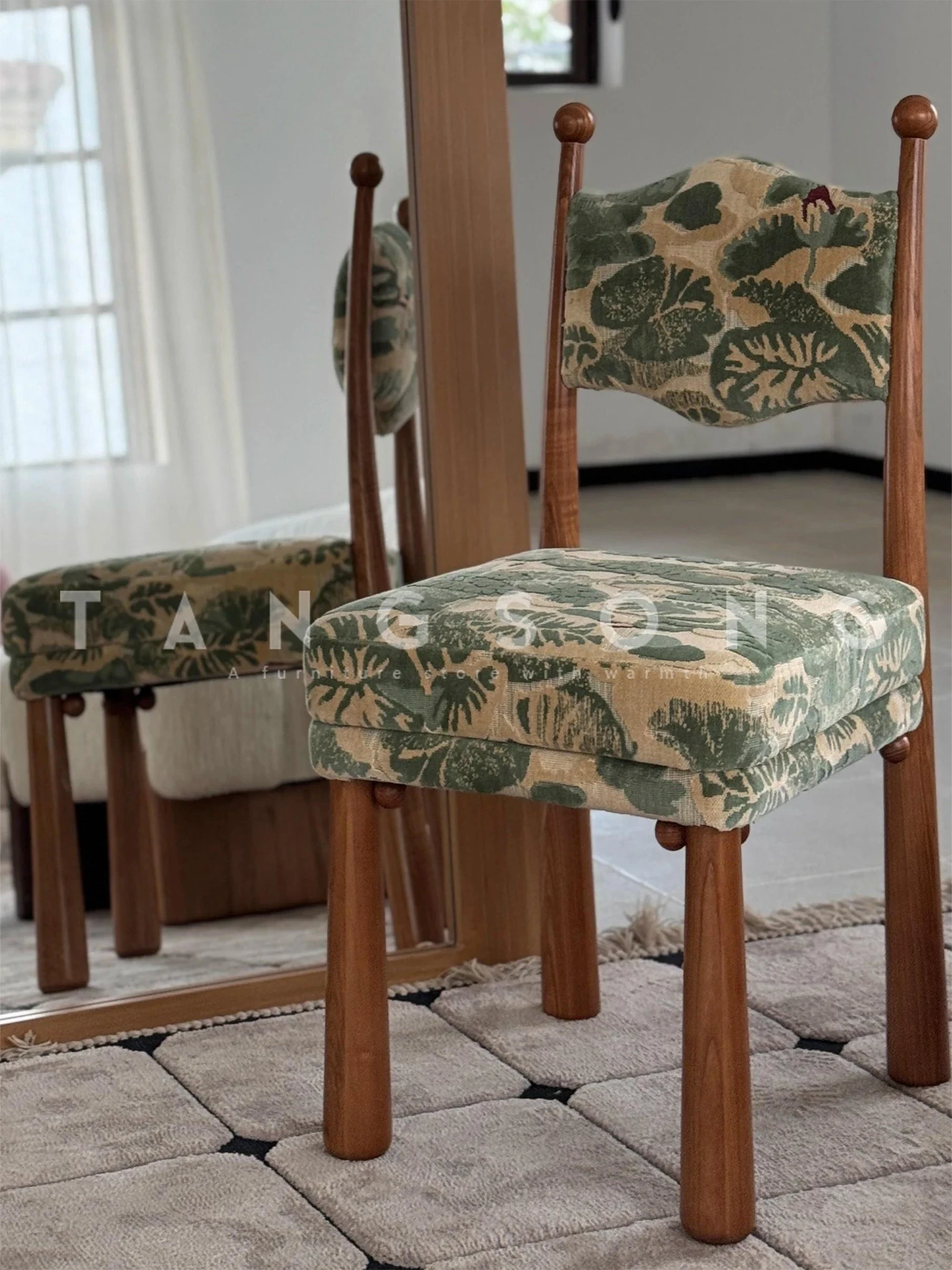 ヴィンテージ風の無垢材ダイニングチェア、ホワイトアッシュ使用!おしゃれで快適なソフトバックレスト。家庭用やレストランにもぴったりのフランス風デザイン。食卓を彩る一品です!