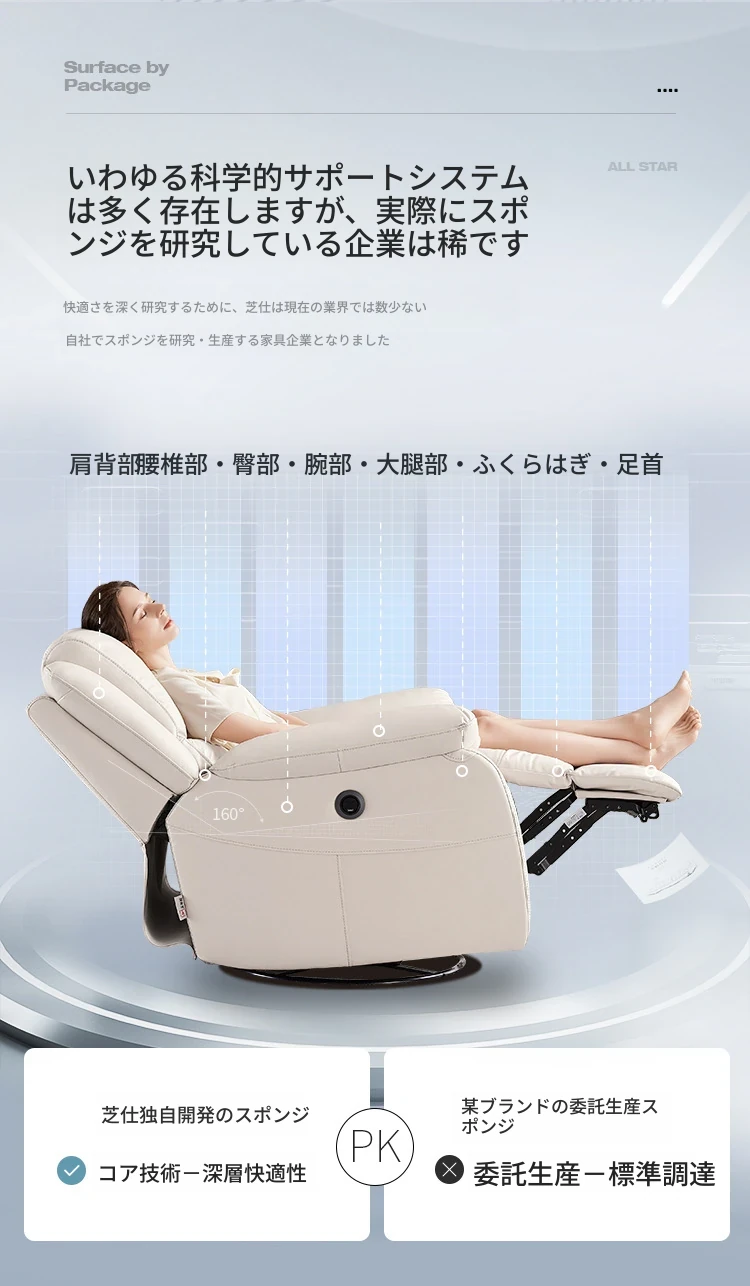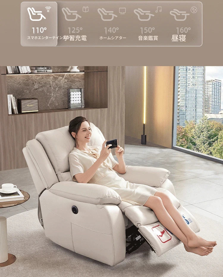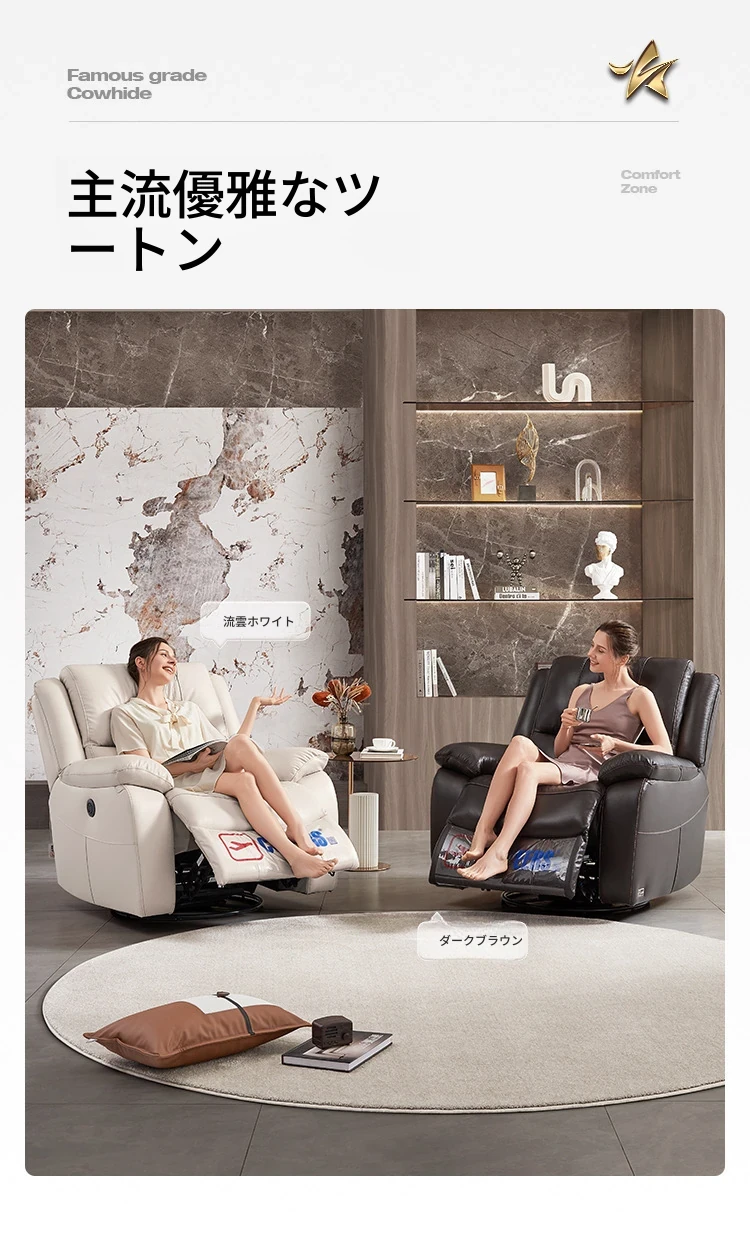 芝华仕モダンシンプル本革電動マルチファンクション一人掛けソファ - リラックスできる揺れる回転式、K135モデルで快適なリビング空間を実現!